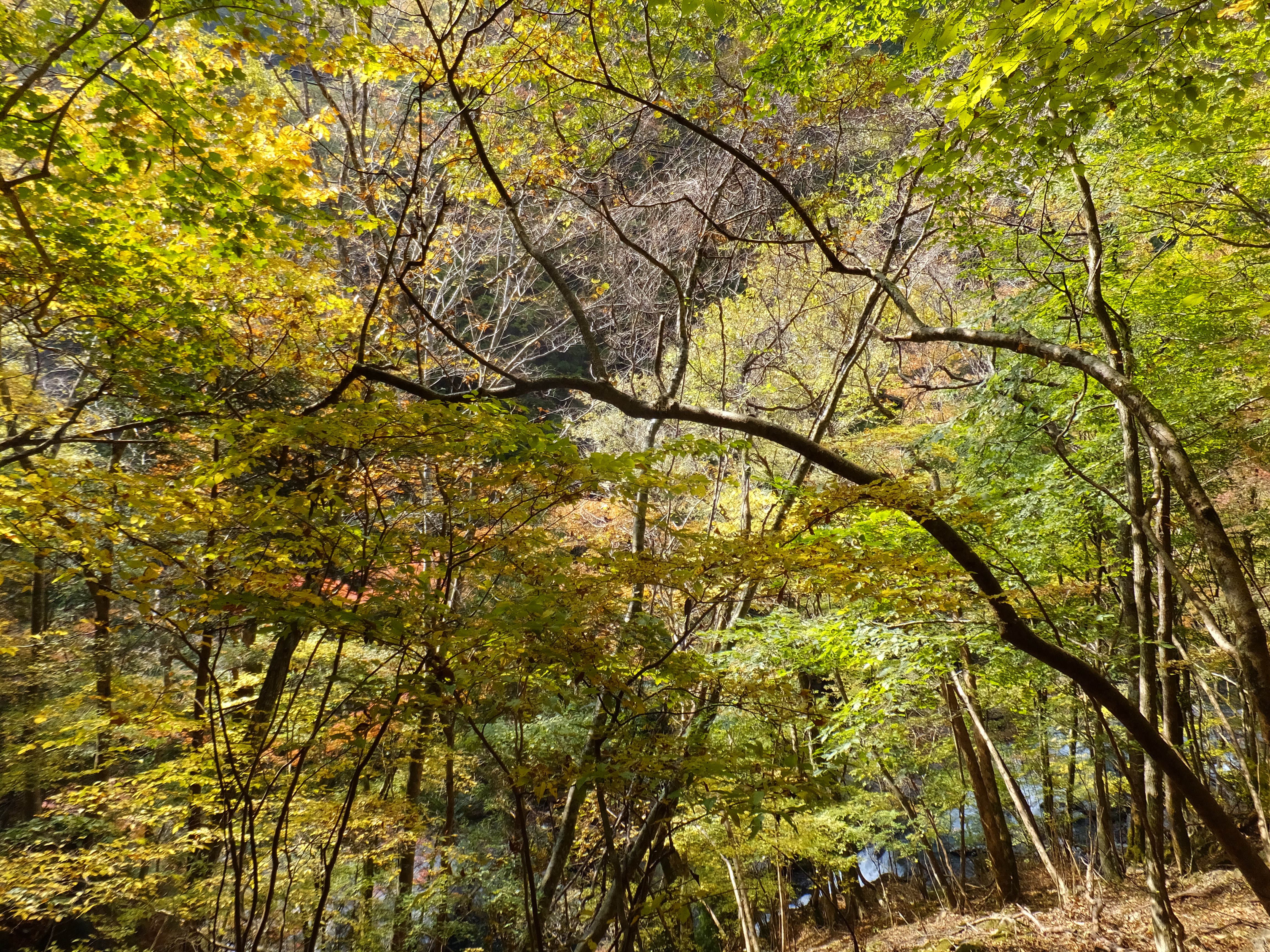 水もきれいで流れも清らか、紅葉とのコントラストも最高でしょ?実際に行ってみてもらえればわかると思いますが、何時間でも眺められる感じです。そのあとも遊歩道を歩いていくと結構登っていきます。この日は曇り空だったのですがすっかり体もあったまってきて勝手に準備万端(笑)