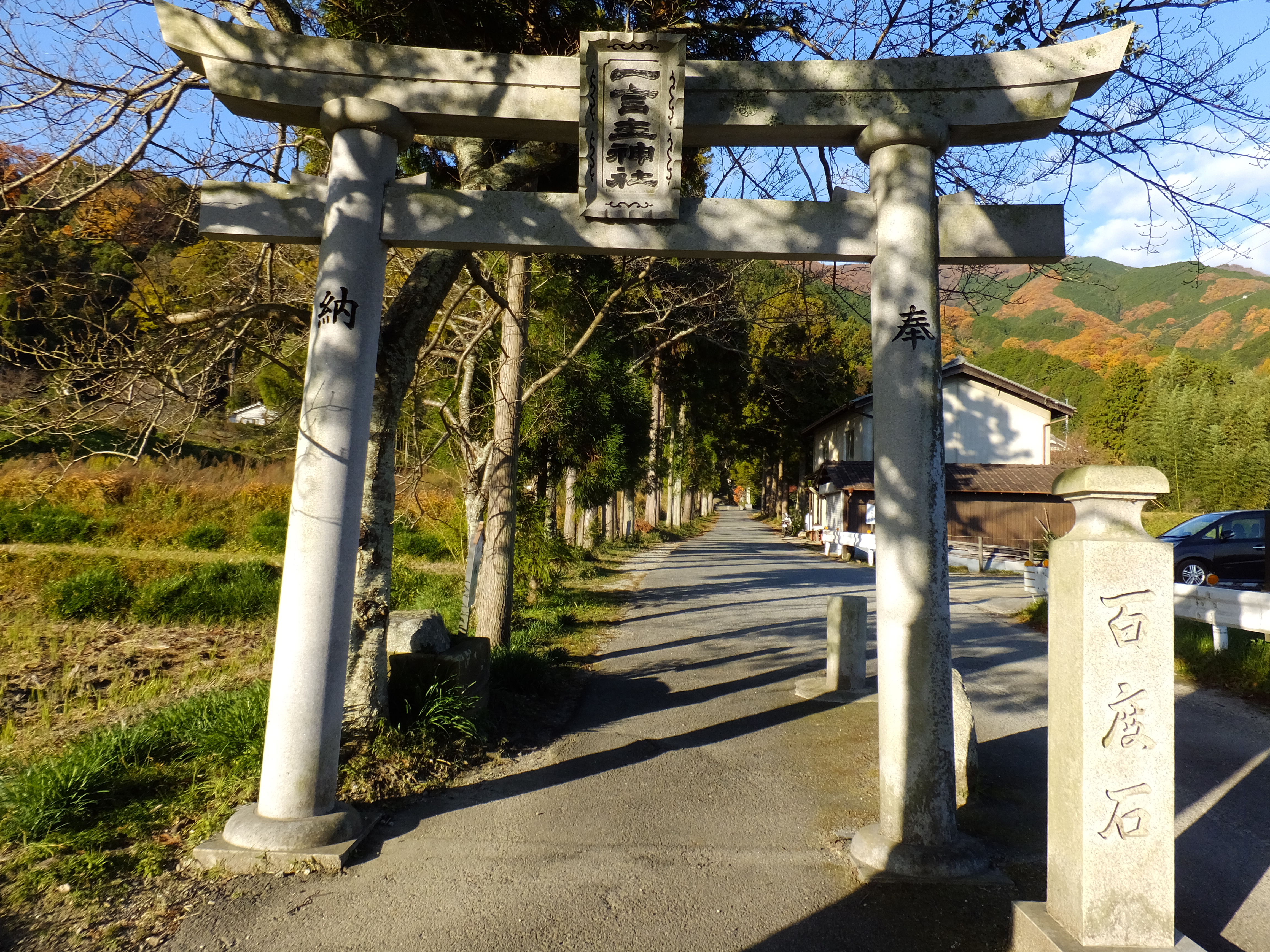 鳥居をくぐると杉並木が続きます。この日は晴天!きれいですねー朝のすがすがしさと晴天、葛城山の景色が相まって汚れ切った心が浄化される気分ですって、誰が汚れてるねん!←定番