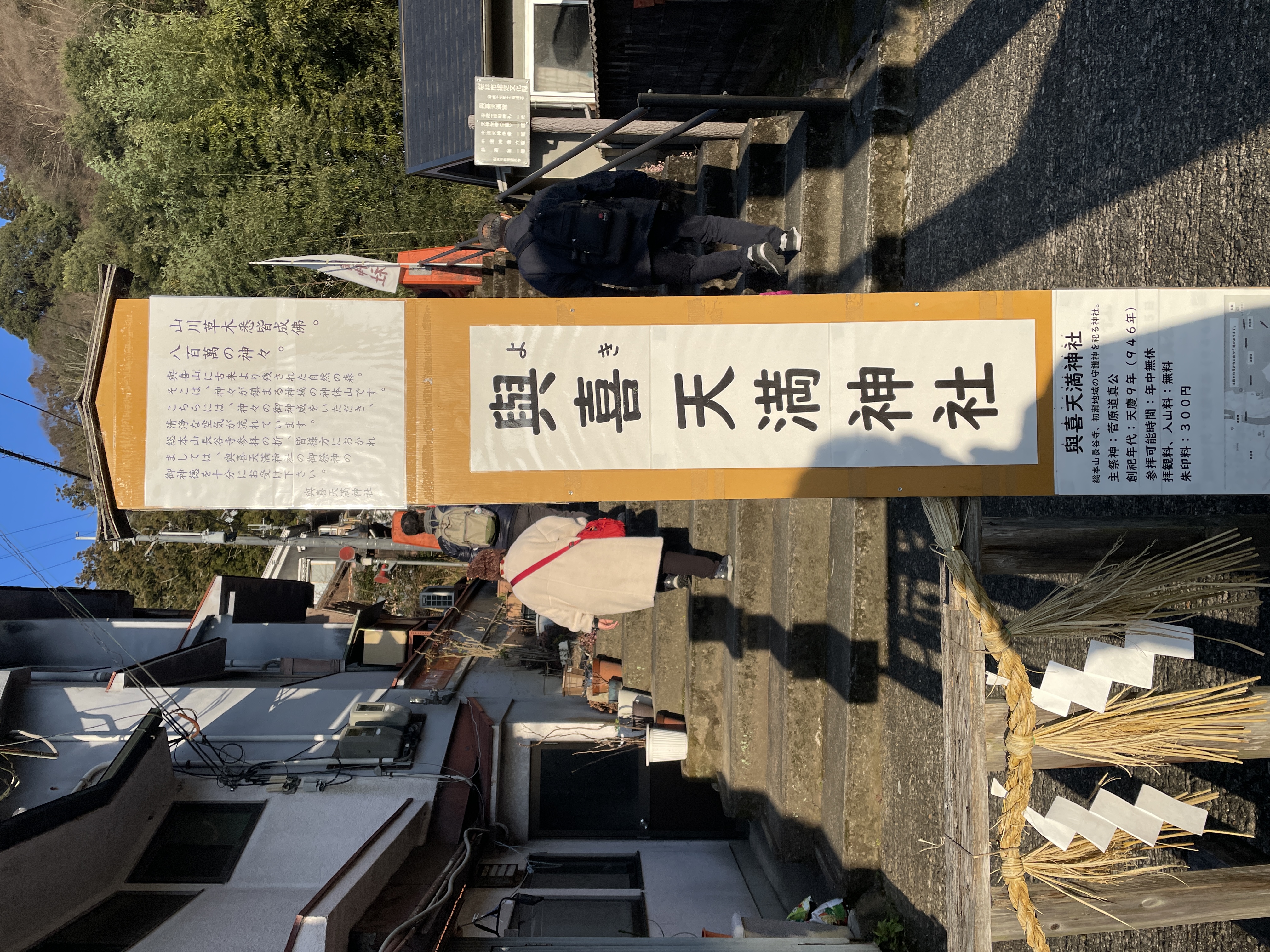 興喜天満神社は近鉄大阪線長谷寺駅から徒歩20分くらいの場所にあります。長谷寺駅を降りてだいたいの方は参道を通り、長谷寺に向かう途中にあり、長い階段を登った先の見晴らしのいいところにありました。ちょうど夕方に行ったので初瀬谷の夕暮れがとても綺麗でした