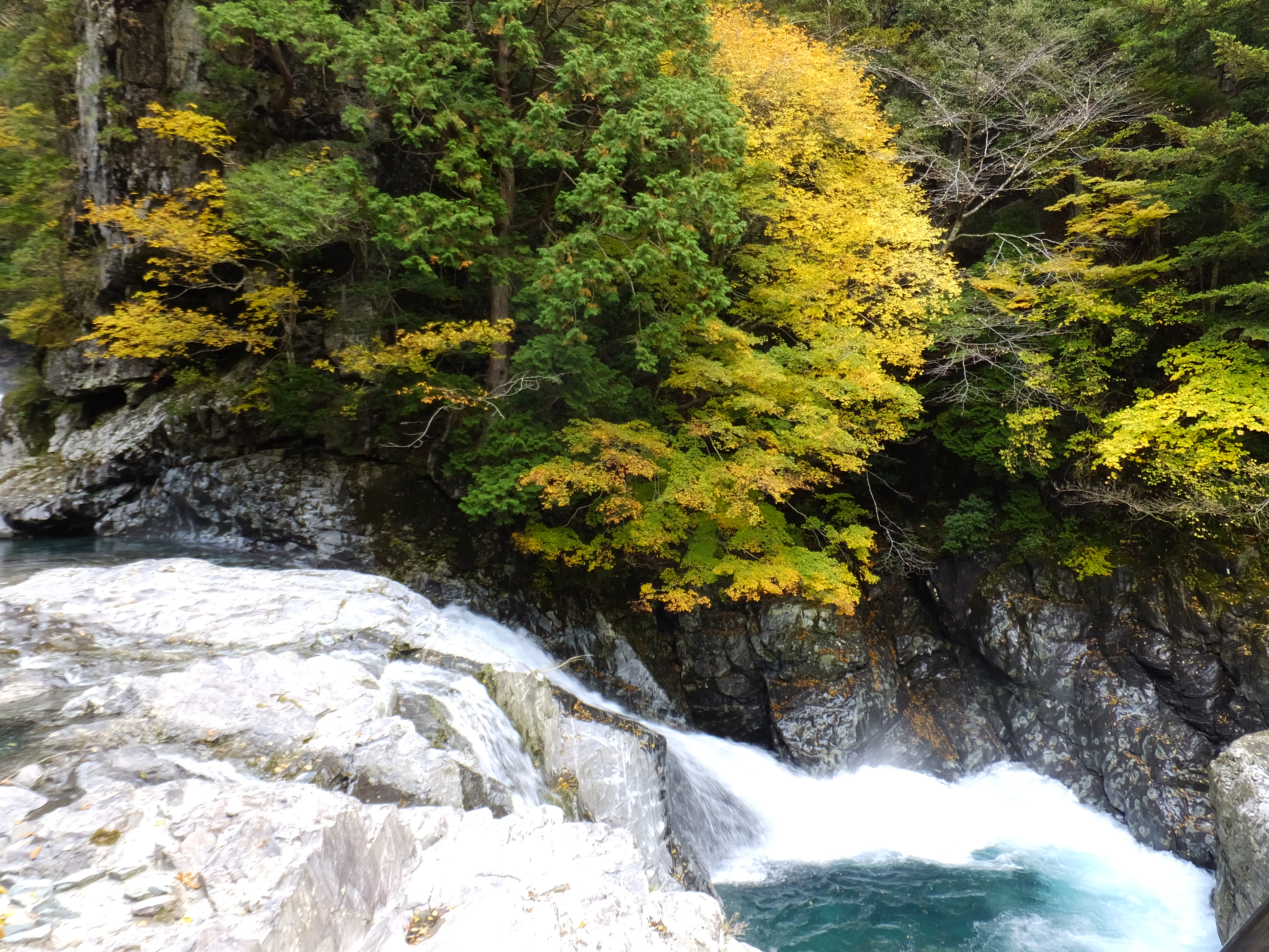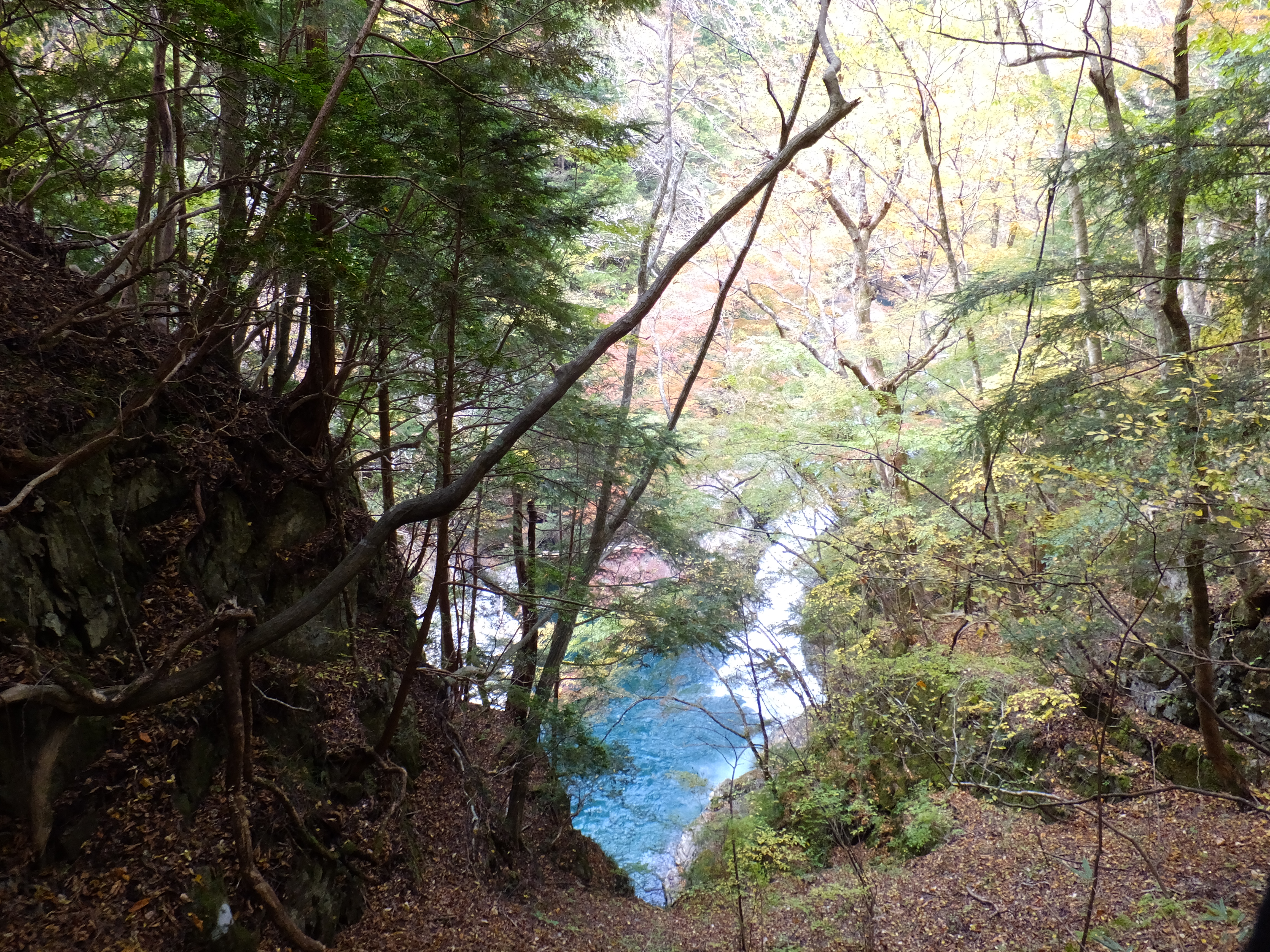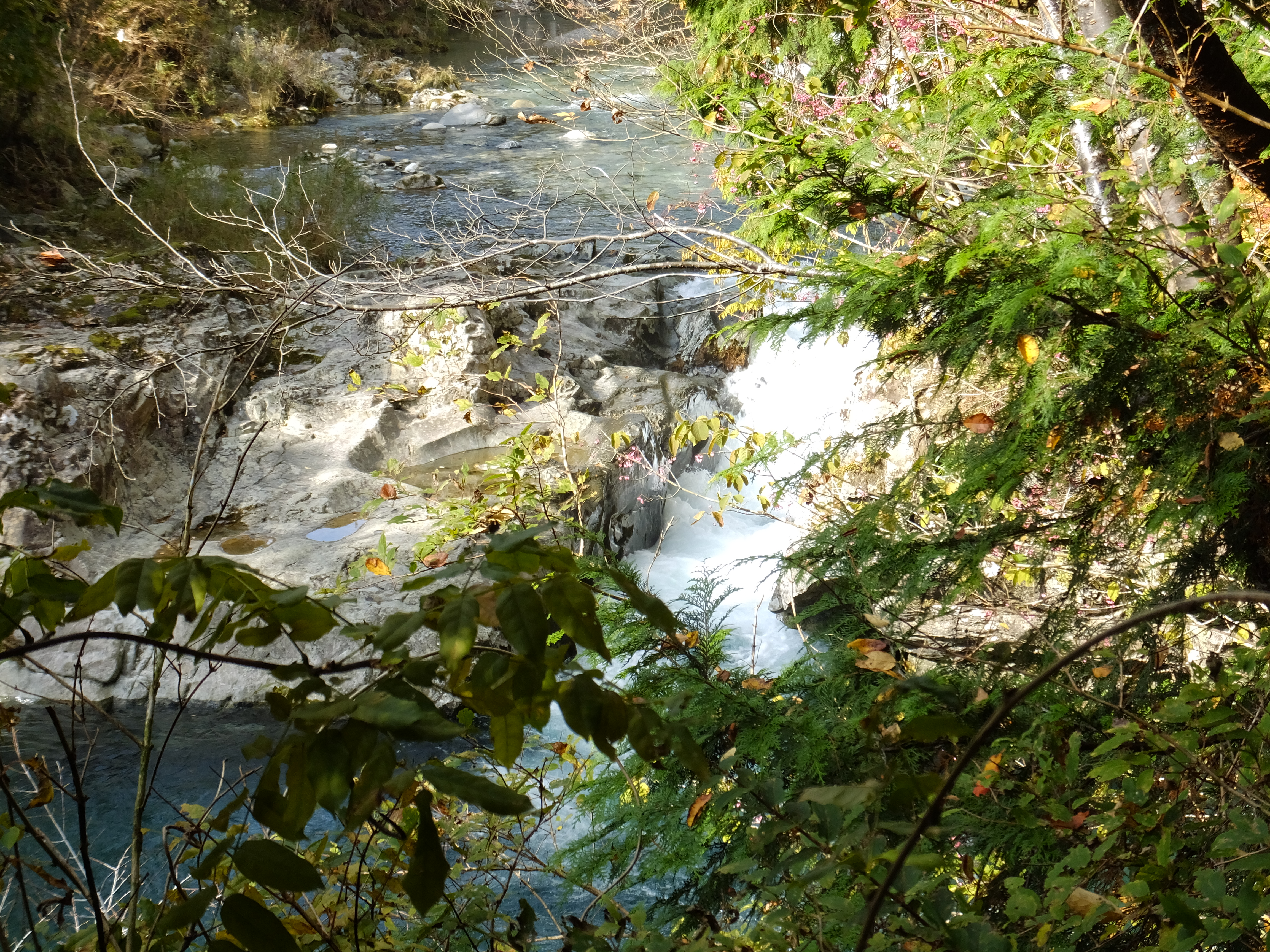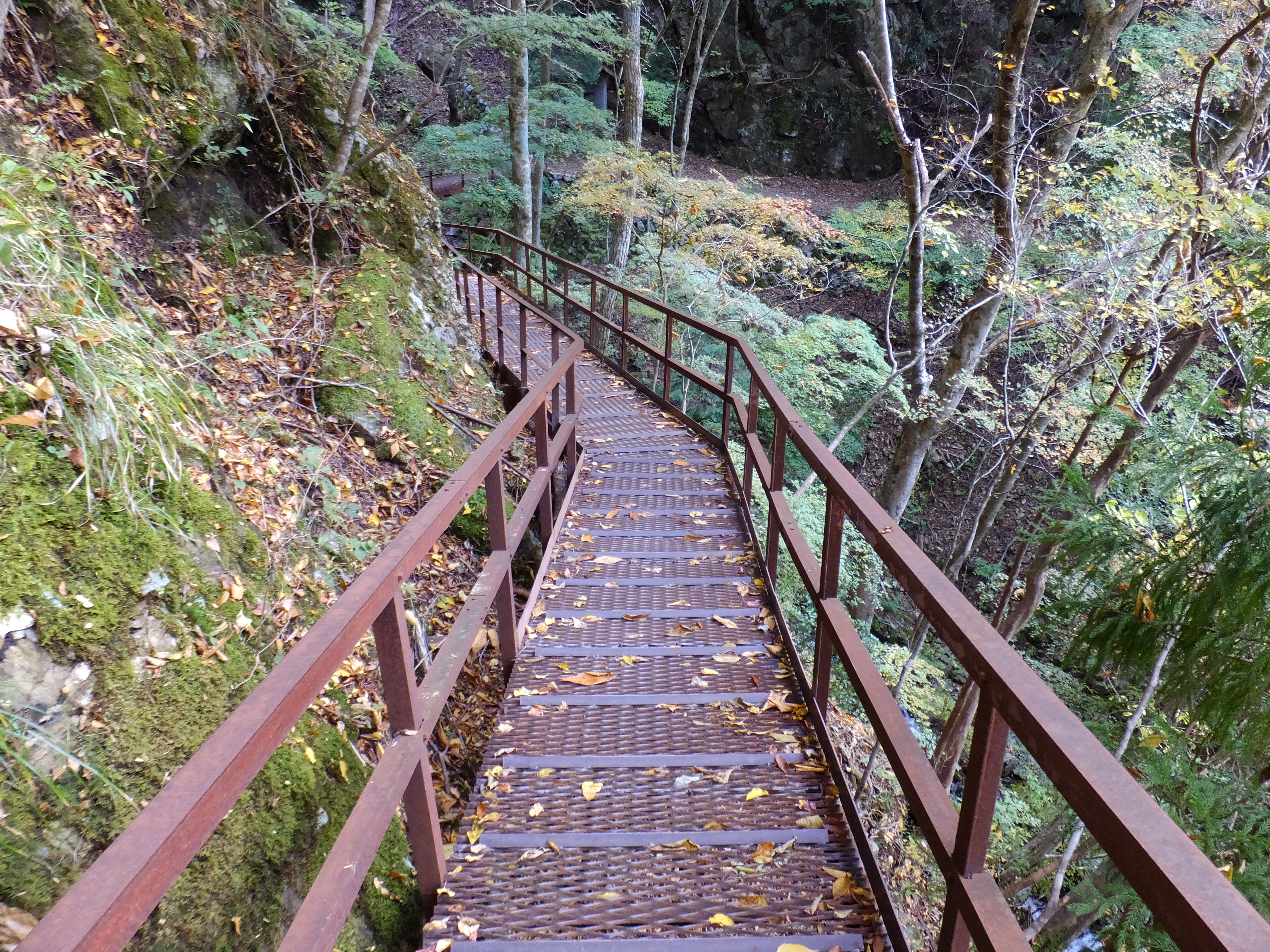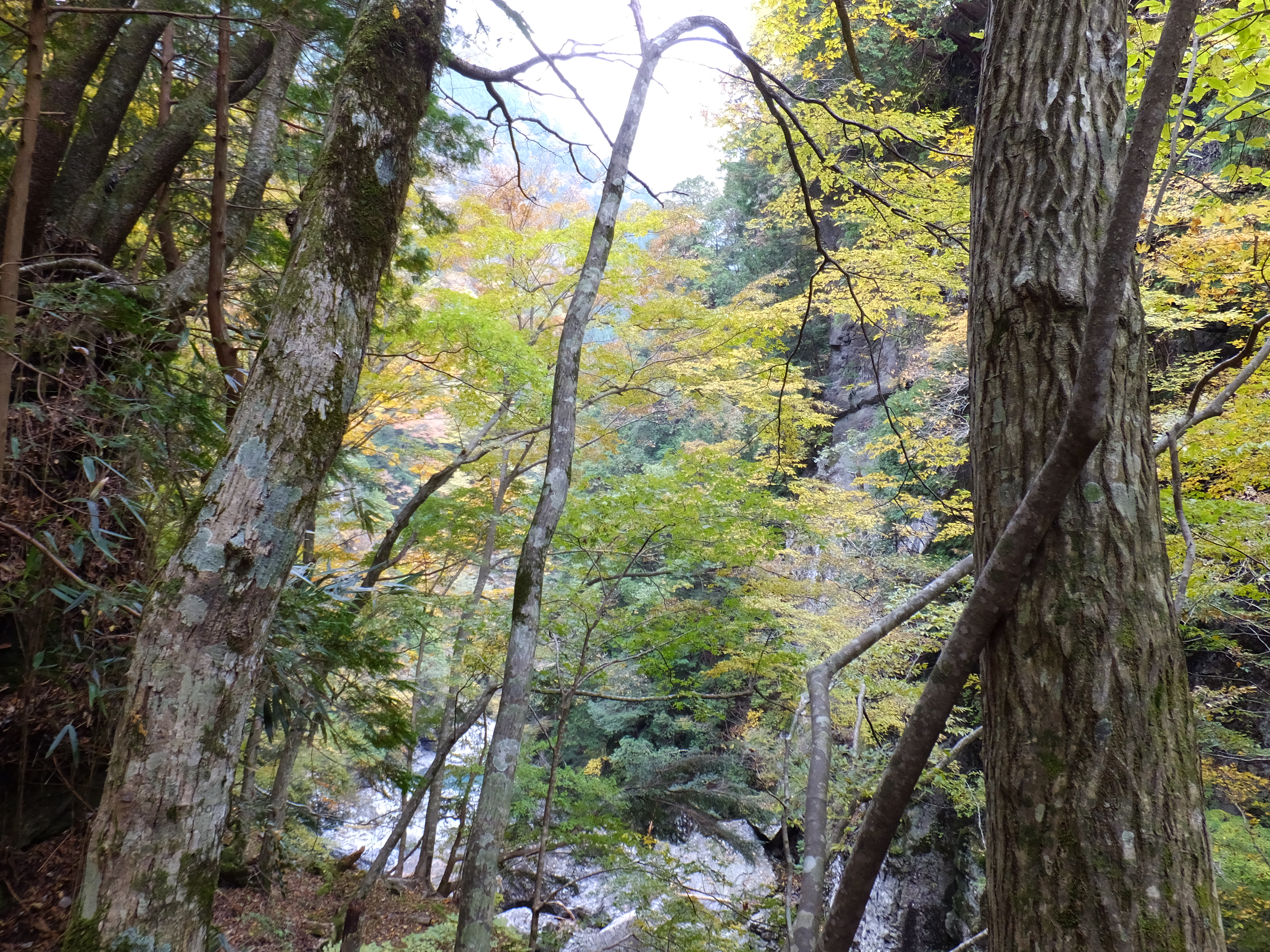 遊歩道入り口から階段になっており、上がっていくとこの風景!上から見ると滝になっていて岩もごつごつしててすごい渓谷!それと紅葉がマッチしてます。