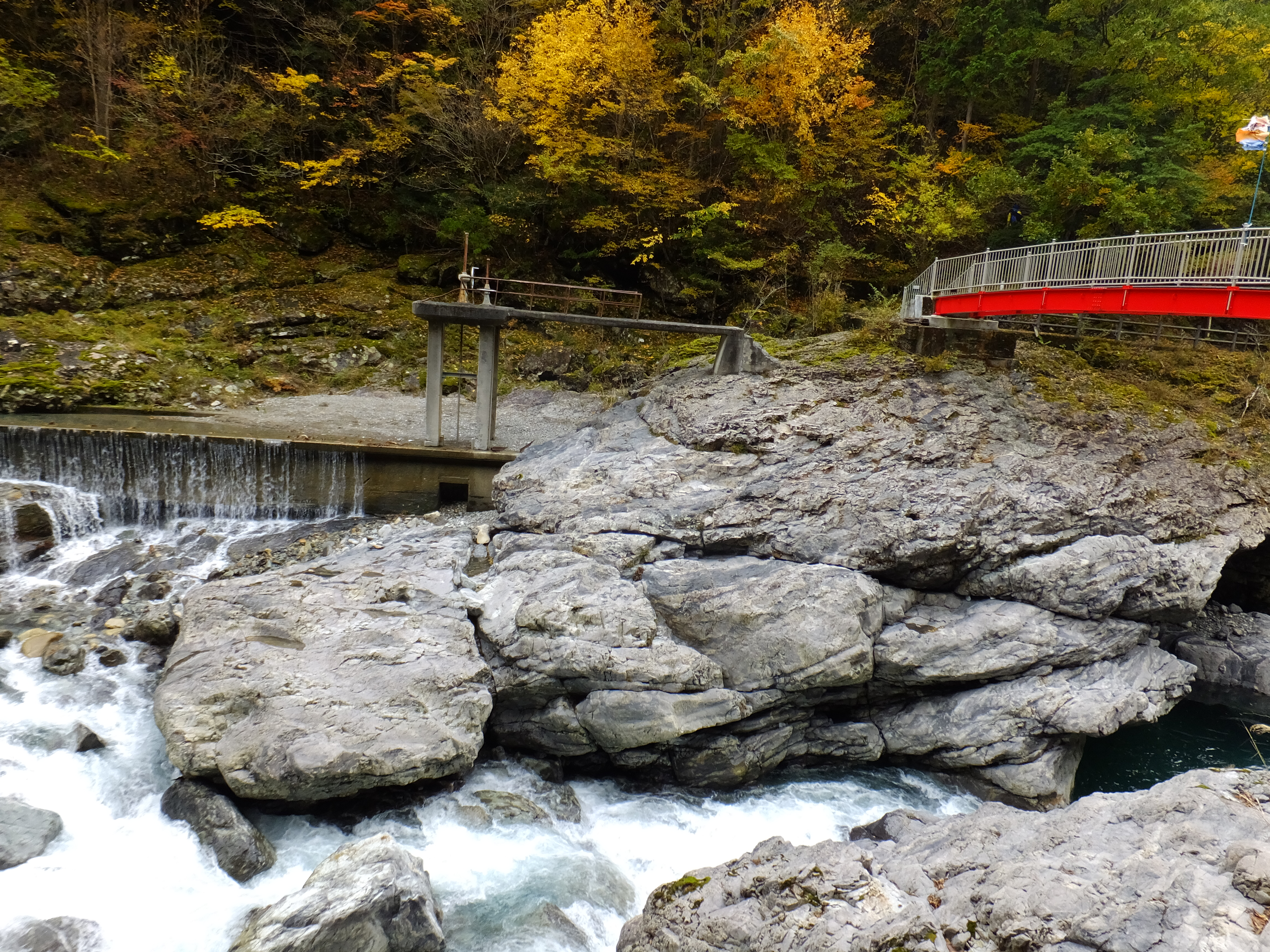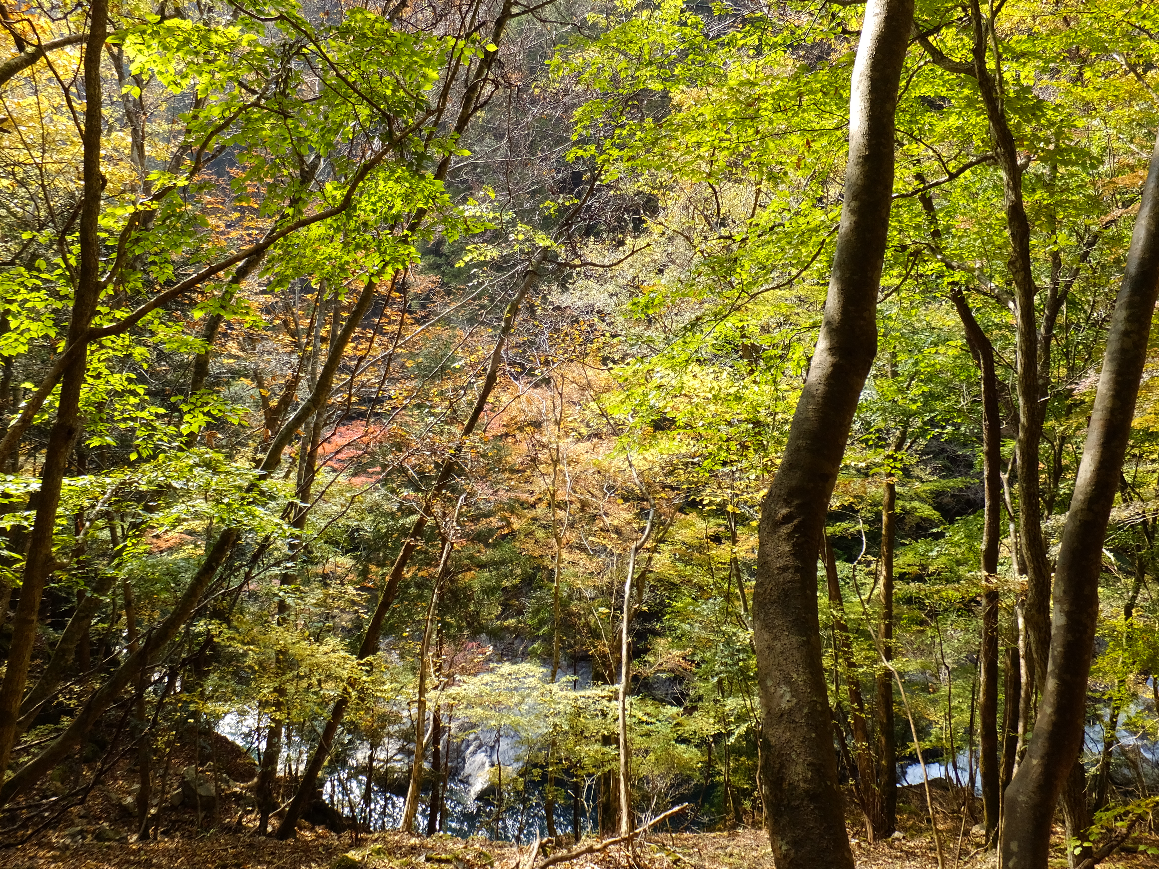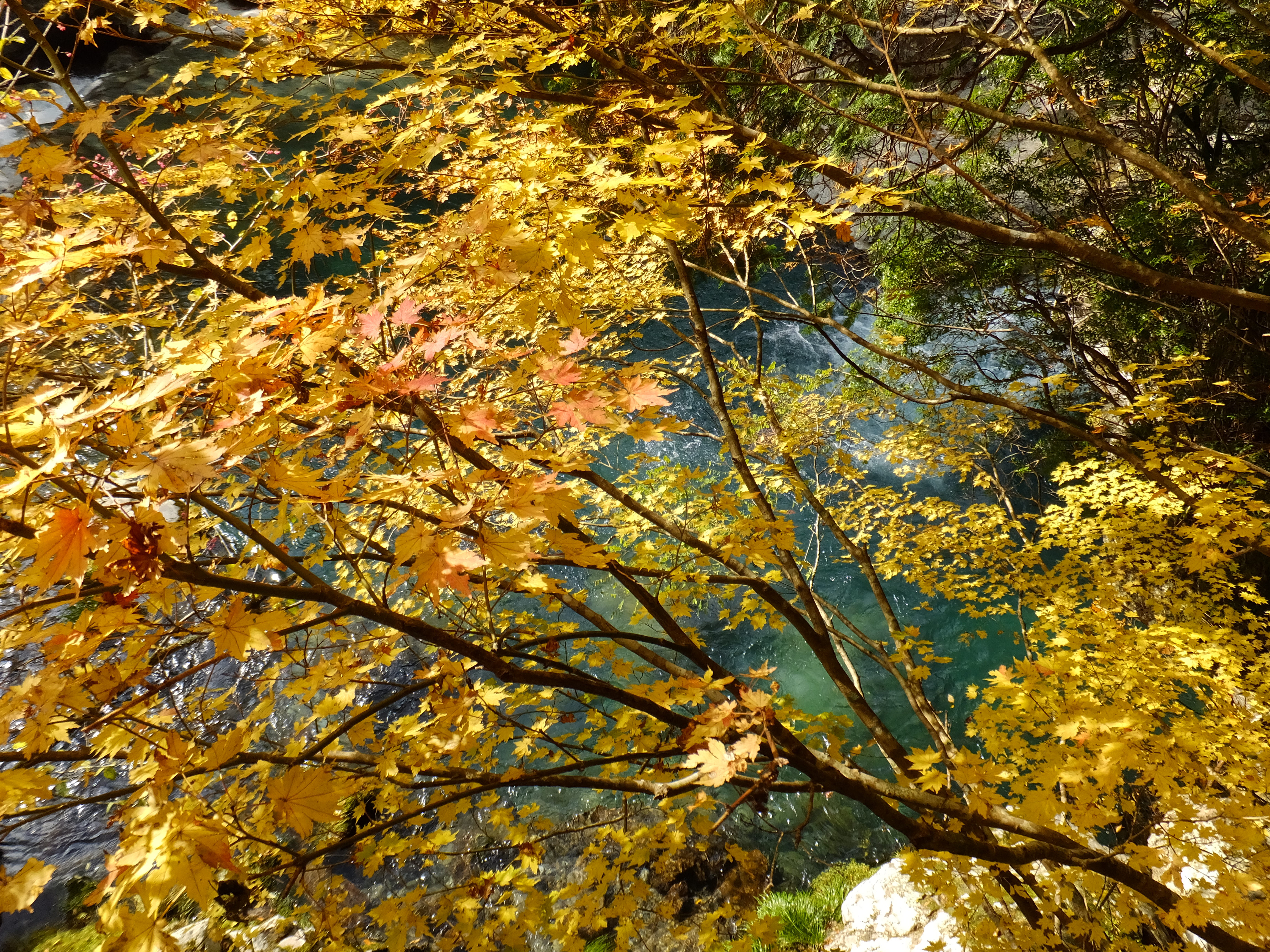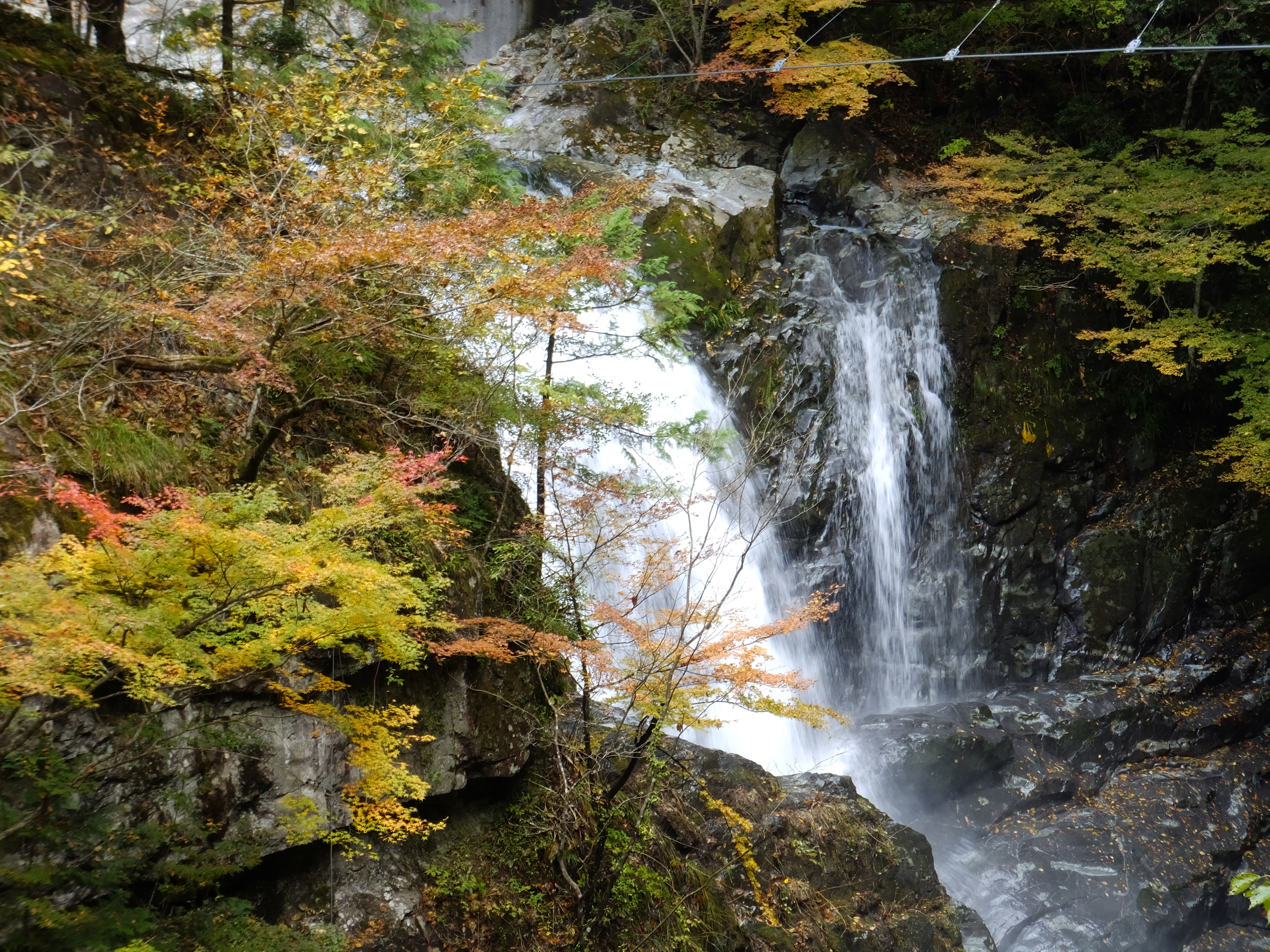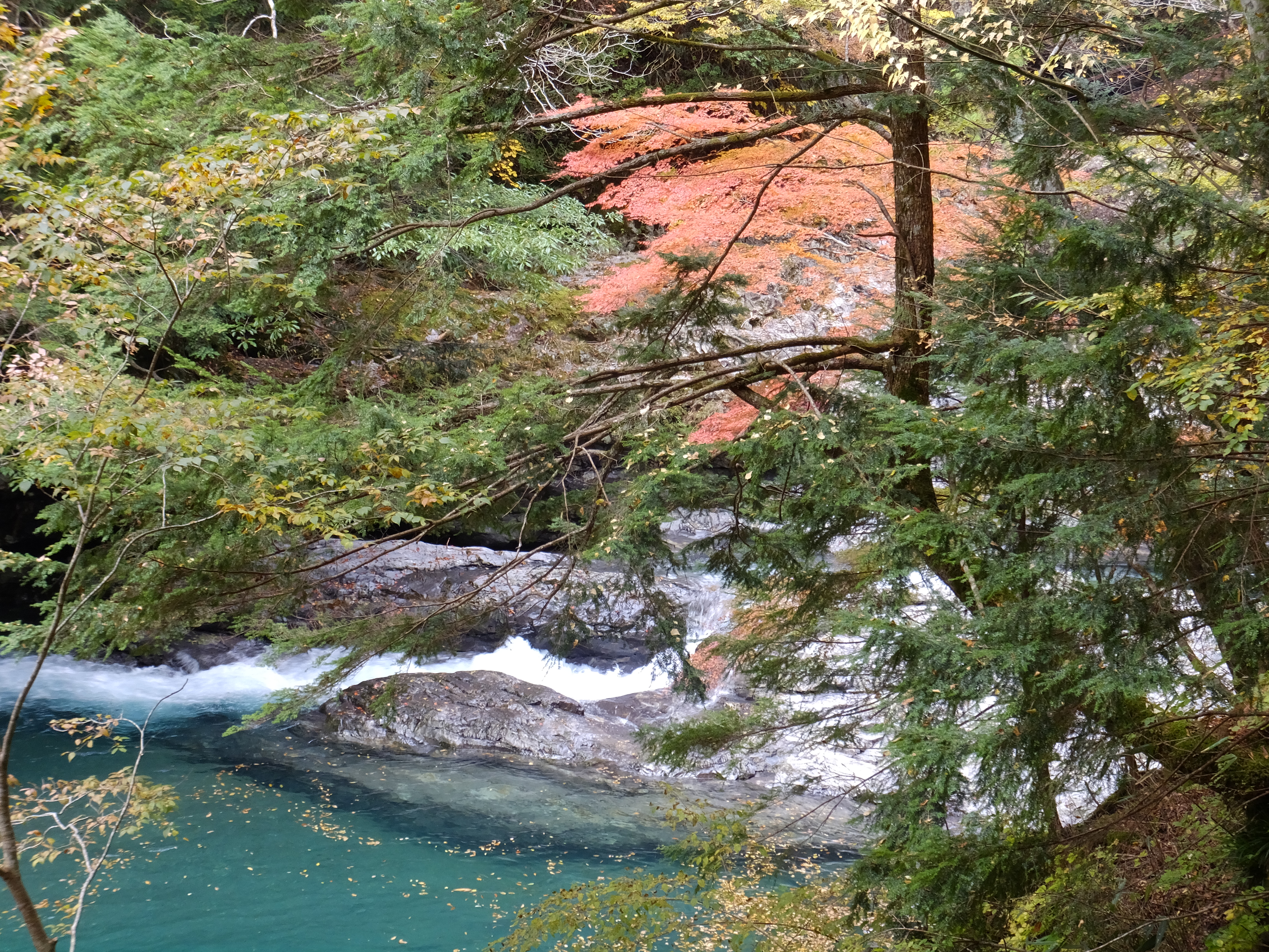 遊歩道入り口から階段になっており、上がっていくとこの風景!上から見ると滝になっていて岩もごつごつしててすごい渓谷!それと紅葉がマッチしてます。
