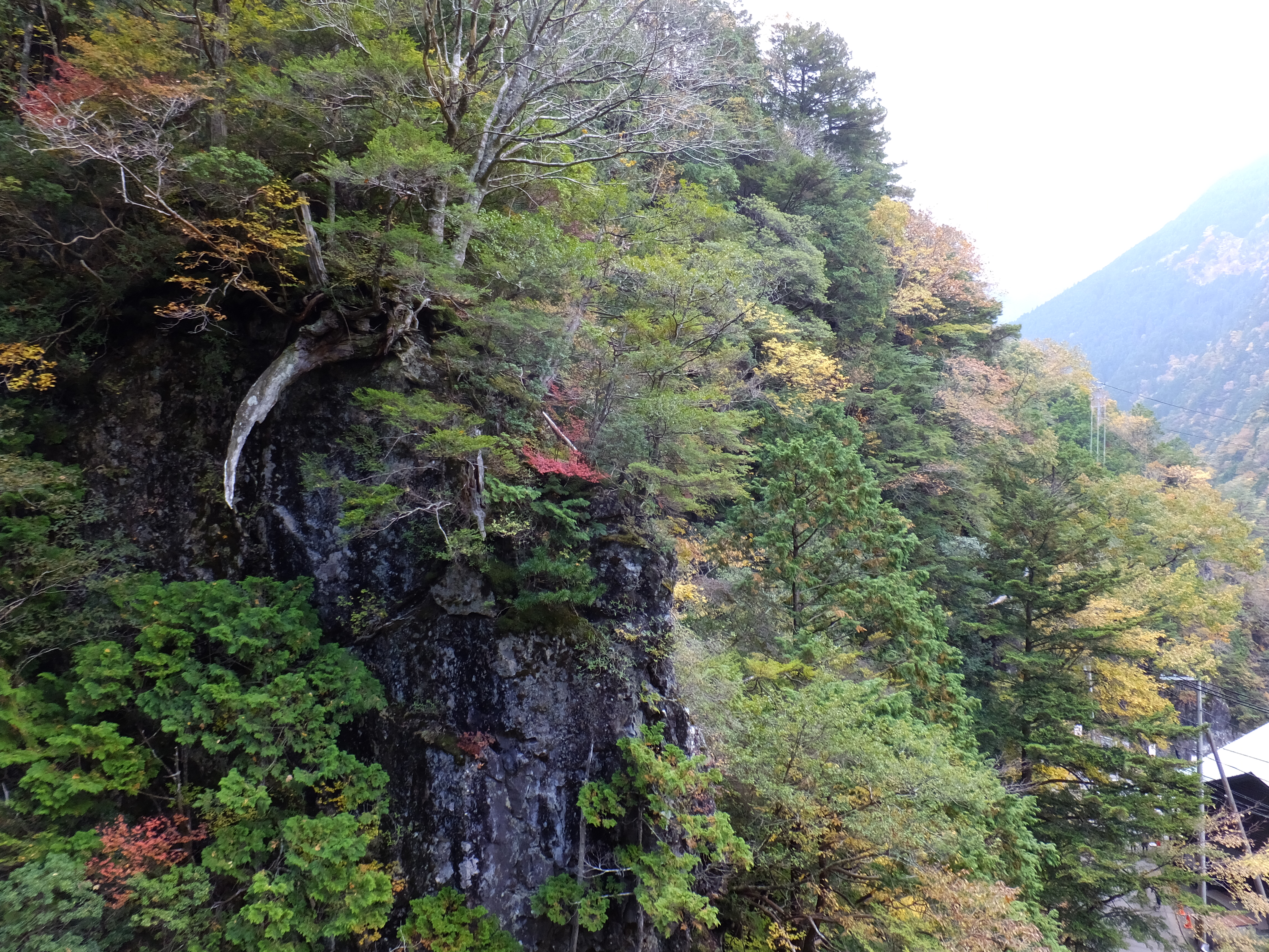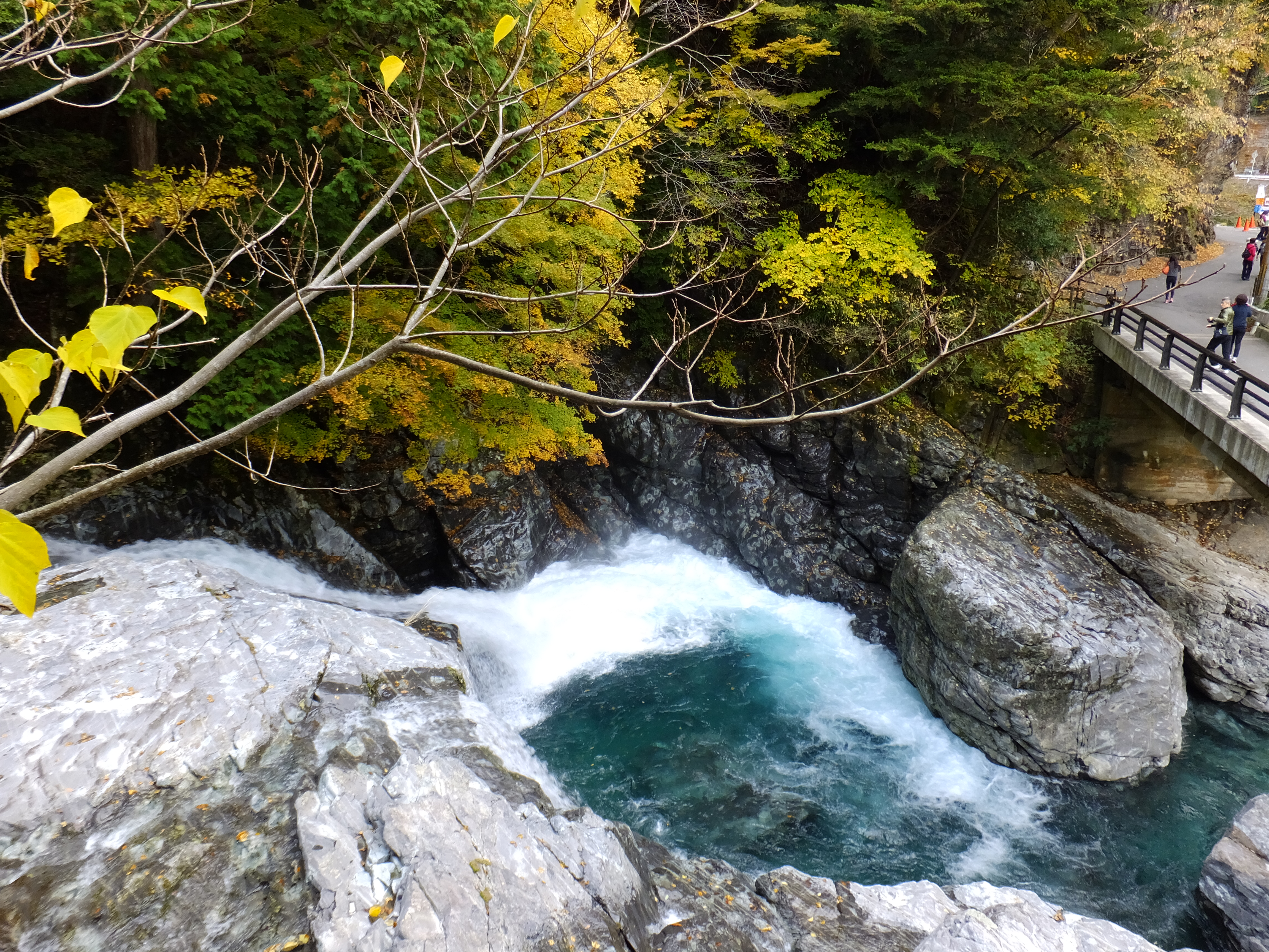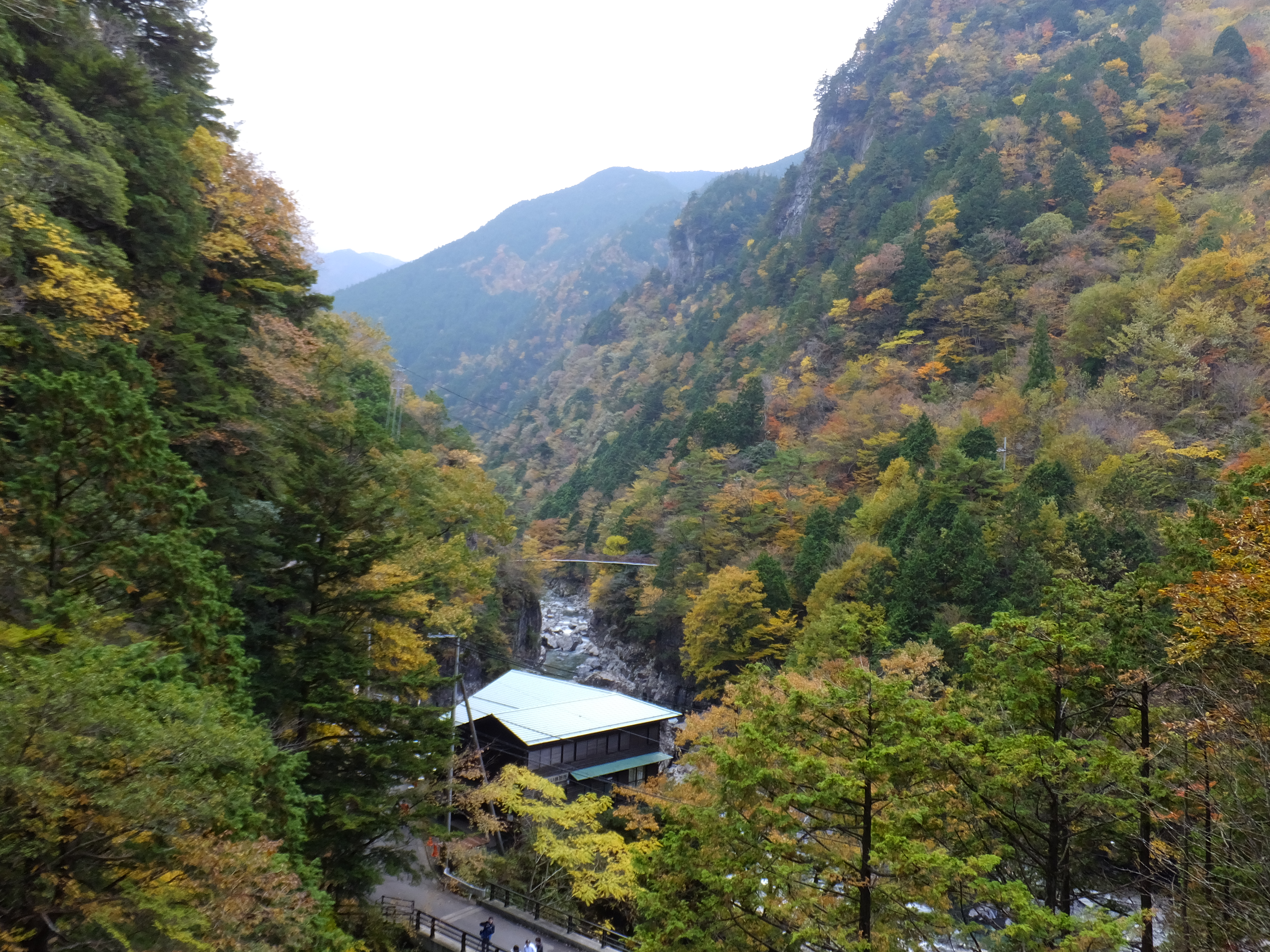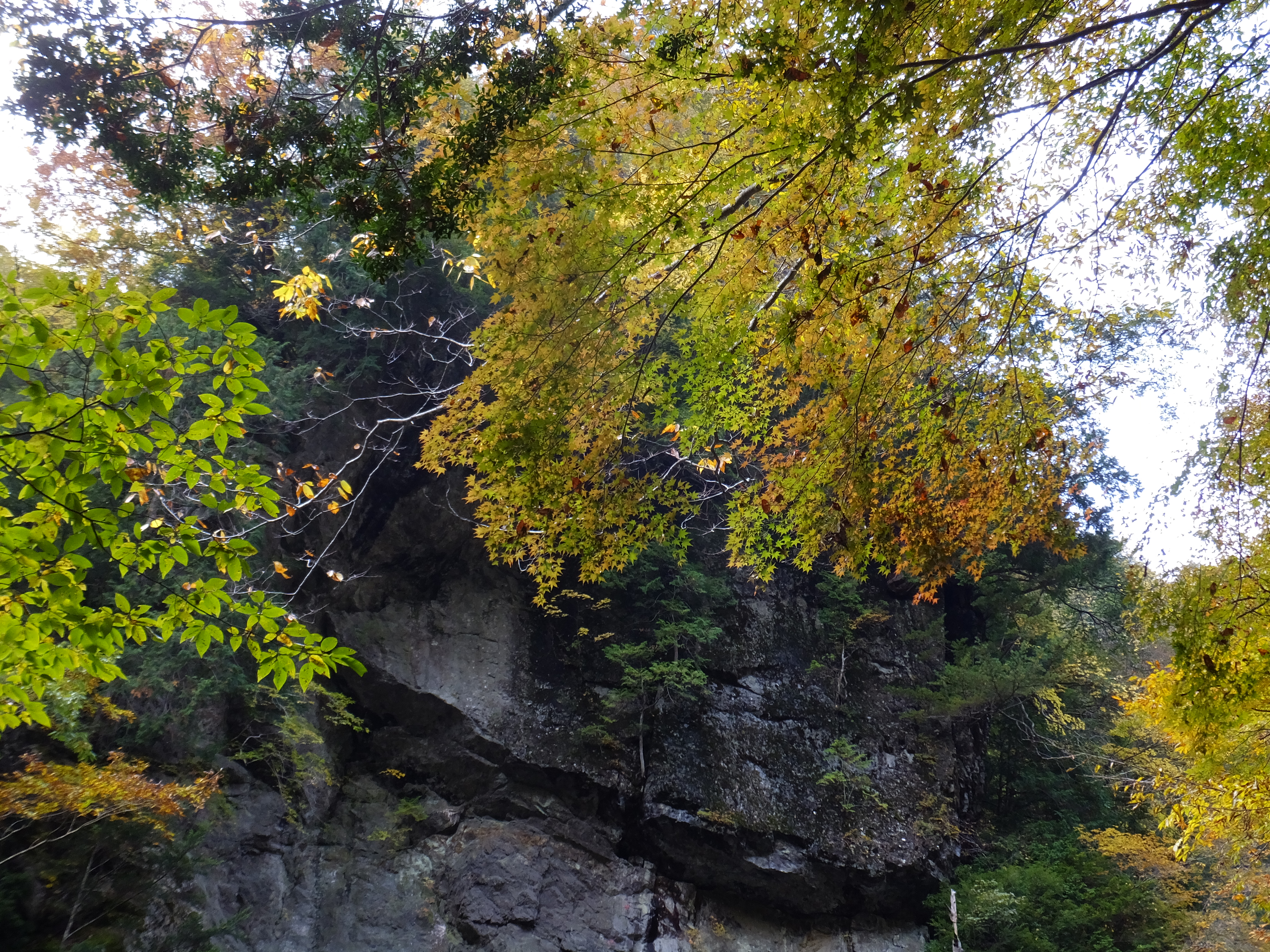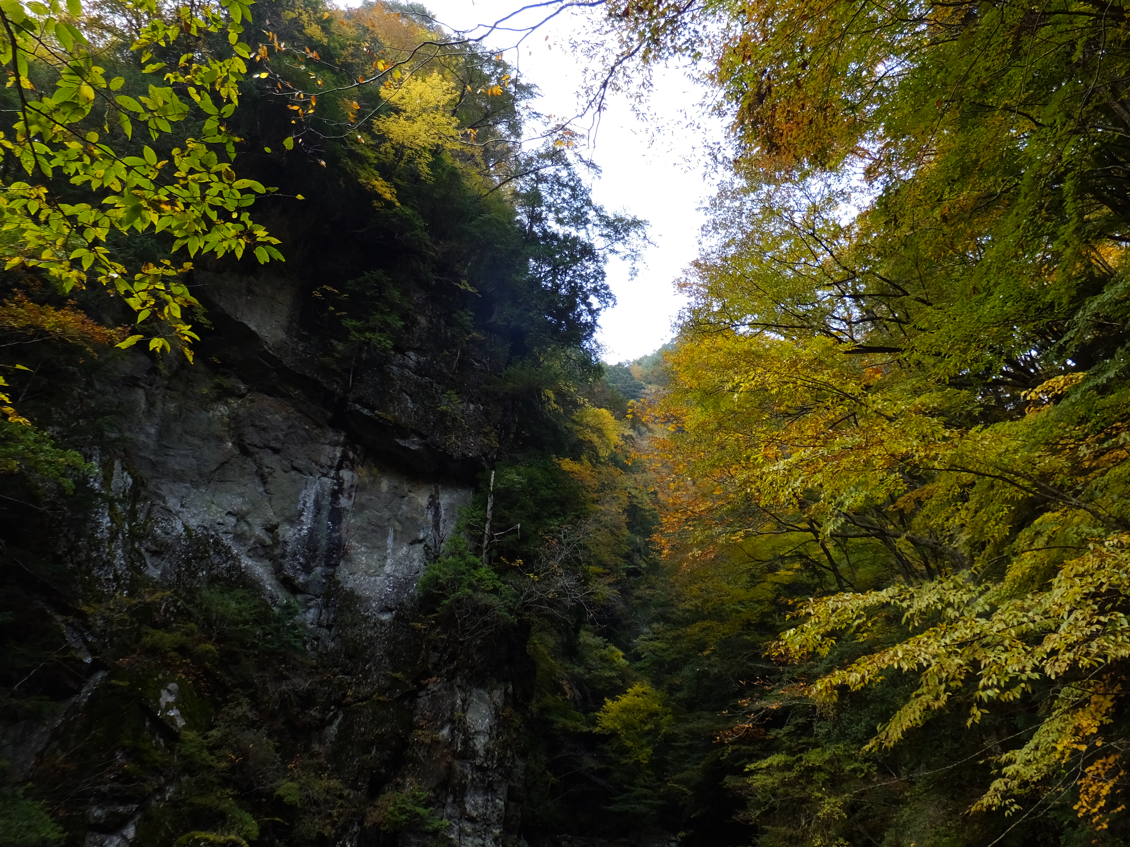 遊歩道入り口から階段になっており、上がっていくとこの風景!上から見ると滝になっていて岩もごつごつしててすごい渓谷!それと紅葉がマッチしてます。