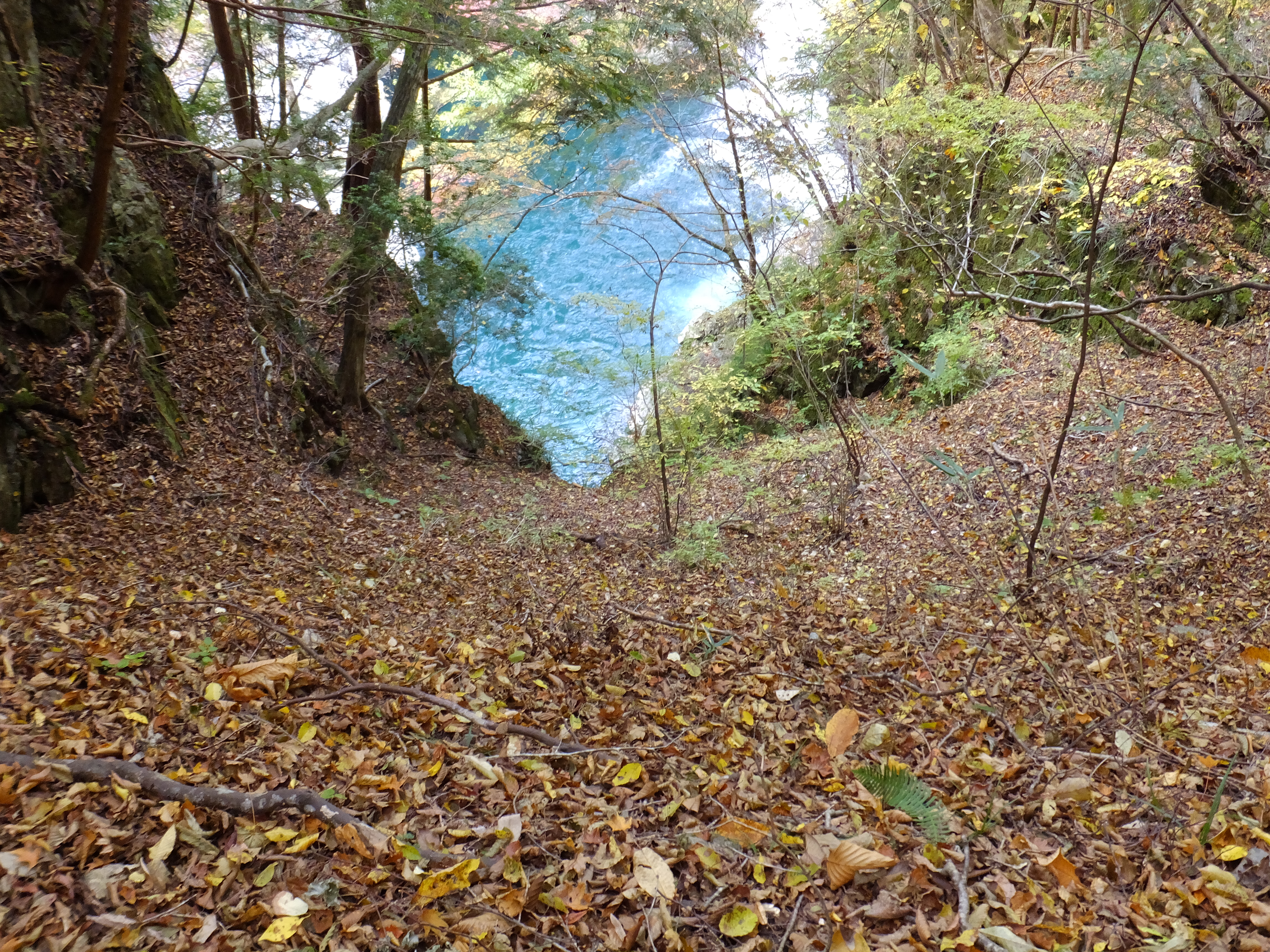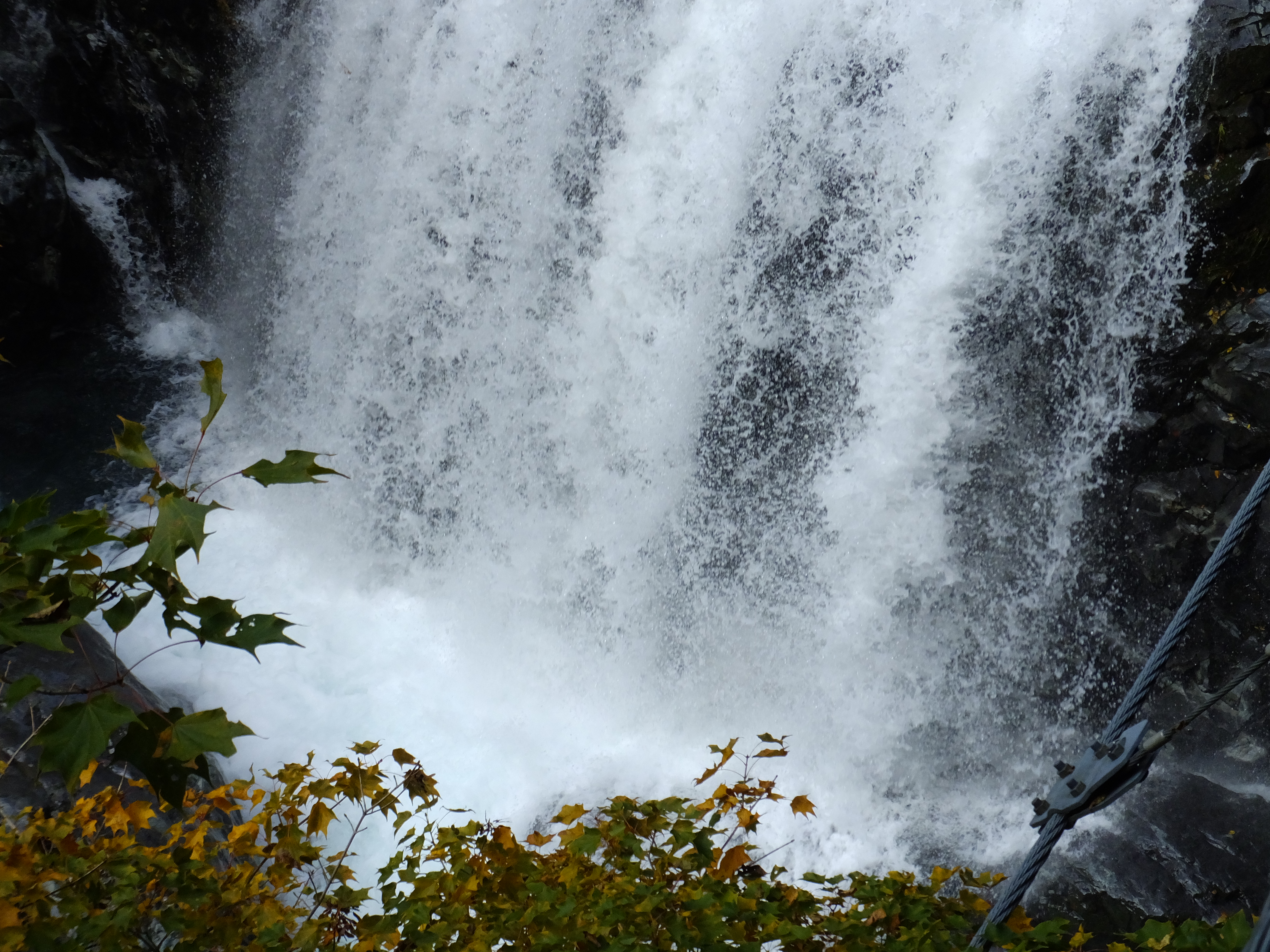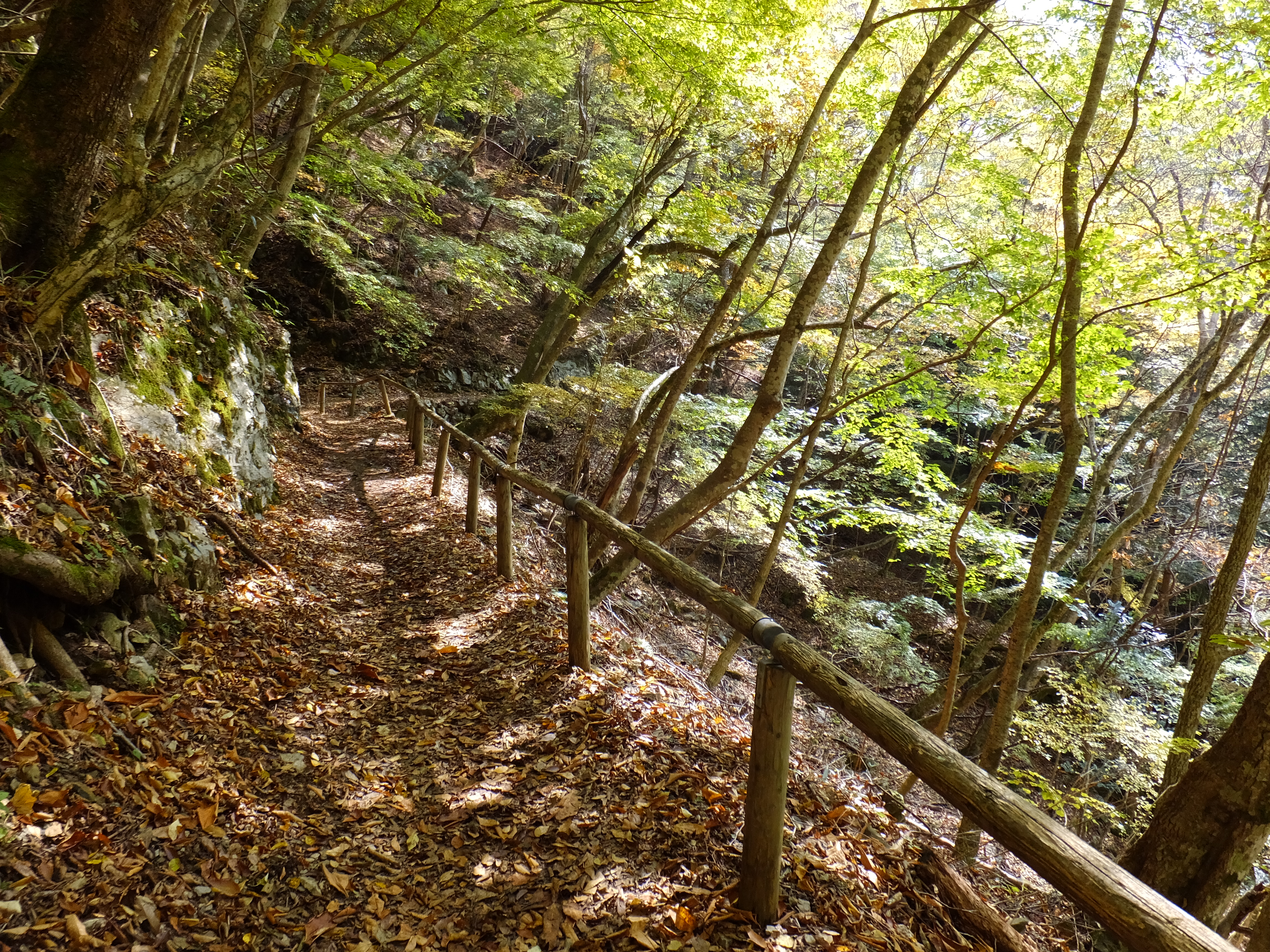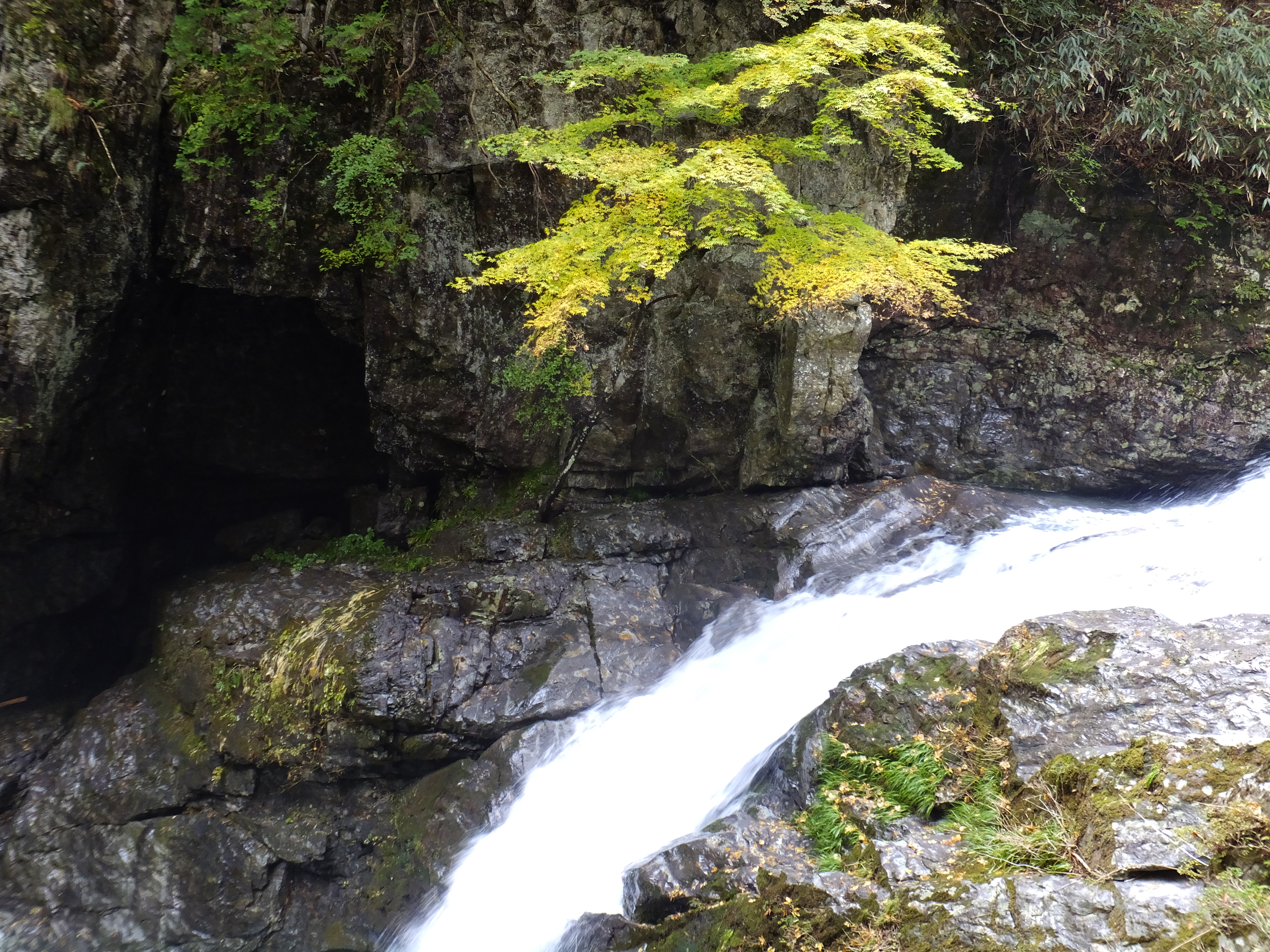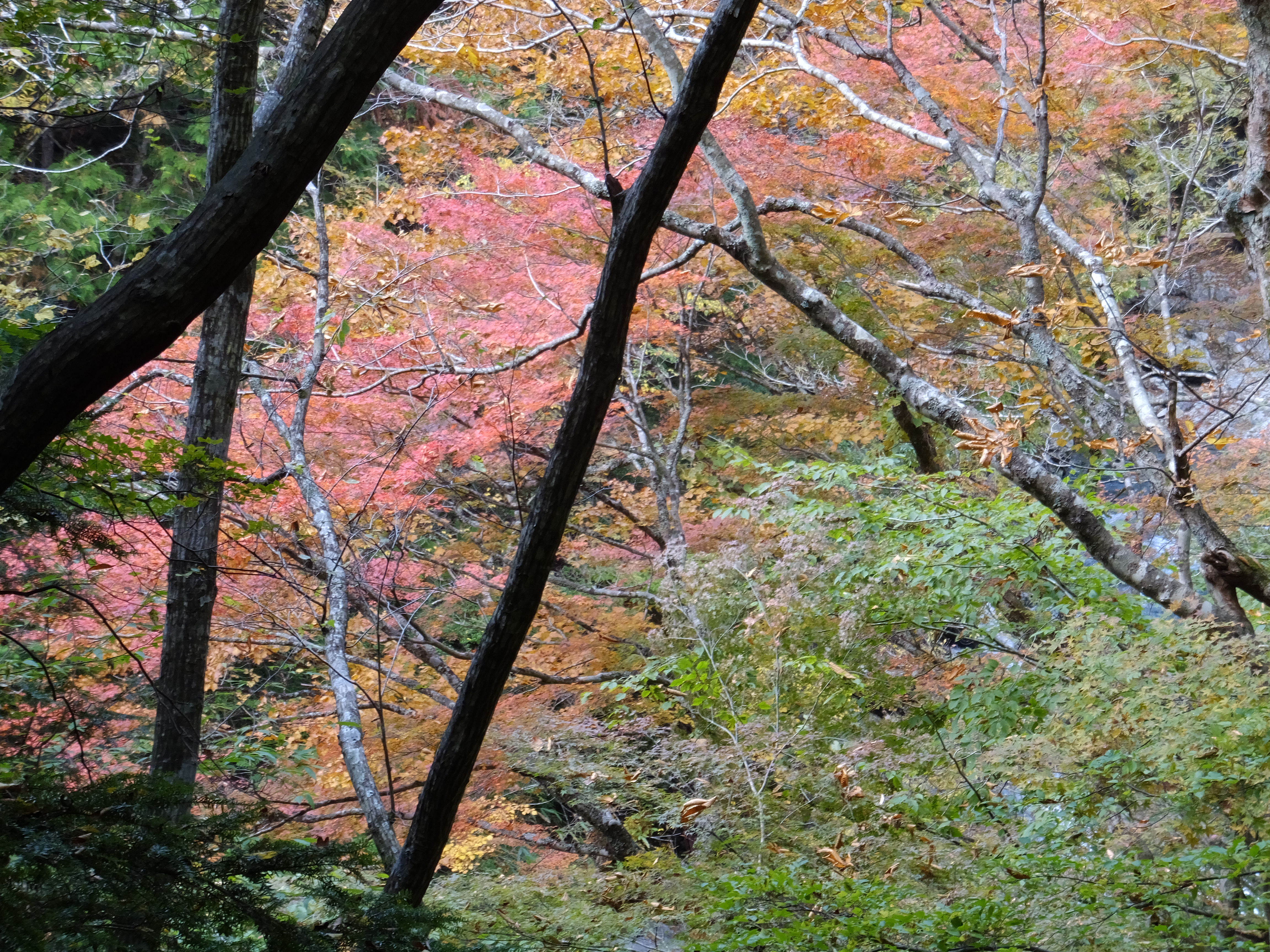 遊歩道入り口から階段になっており、上がっていくとこの風景!上から見ると滝になっていて岩もごつごつしててすごい渓谷!それと紅葉がマッチしてます。