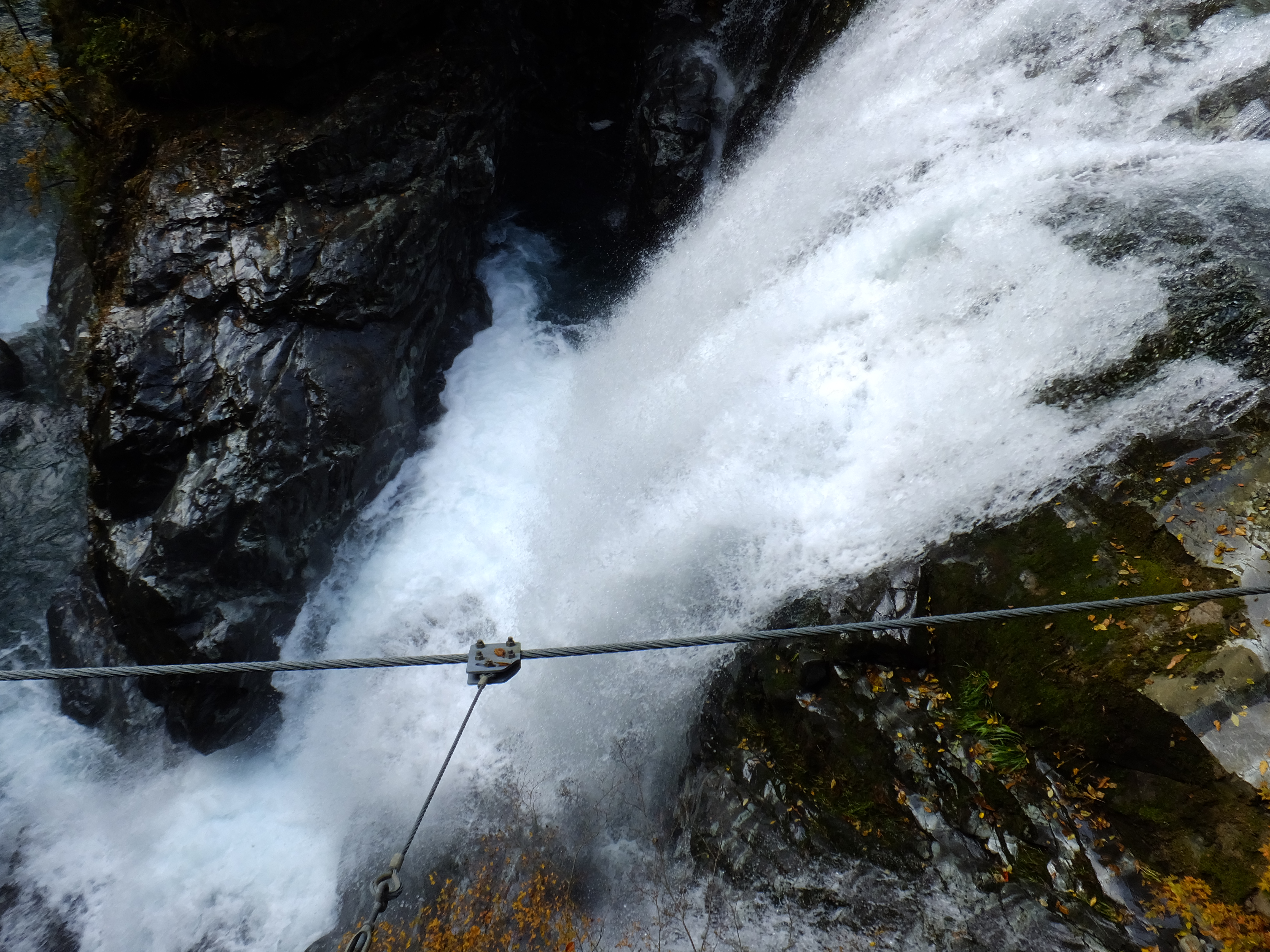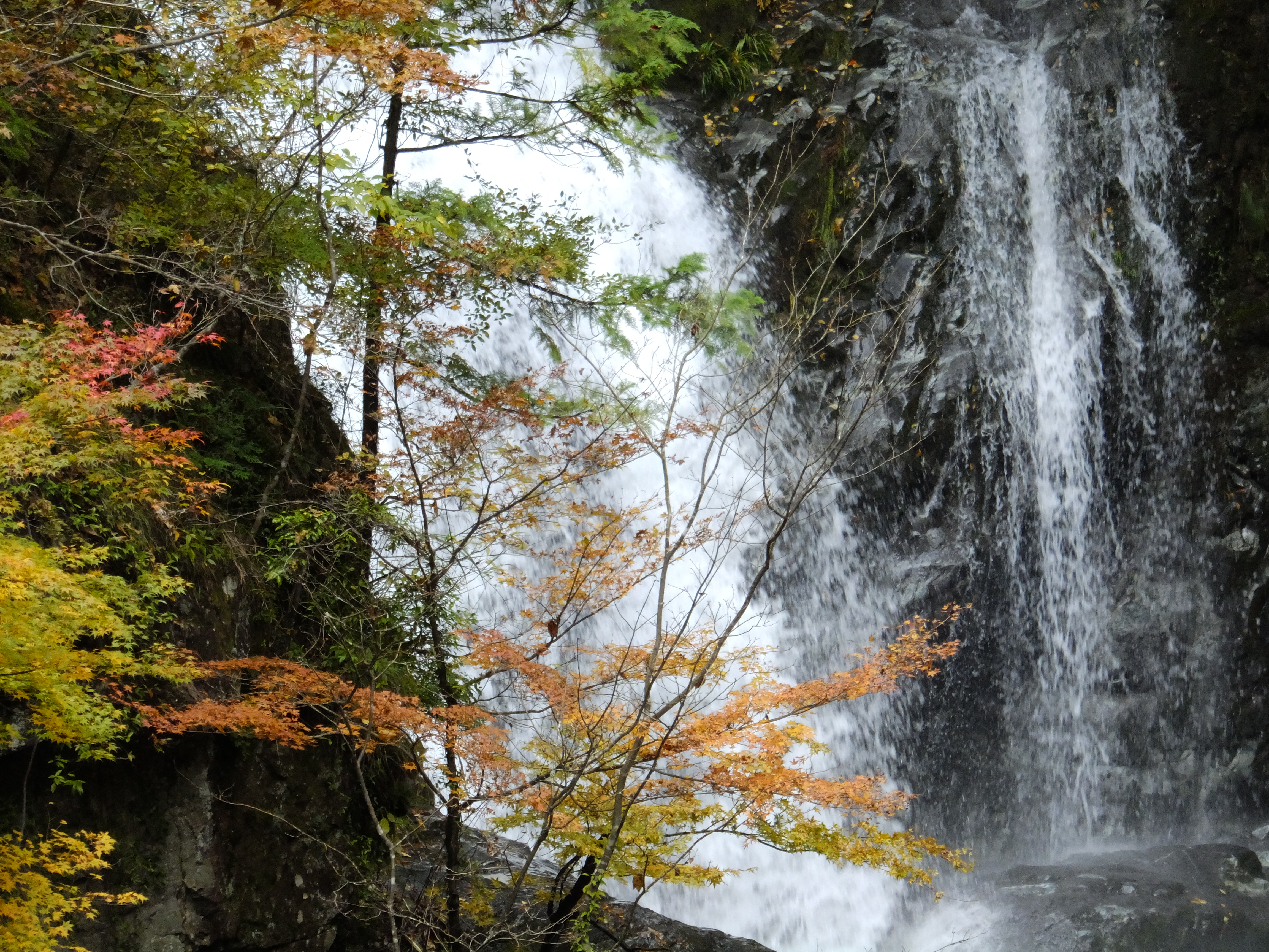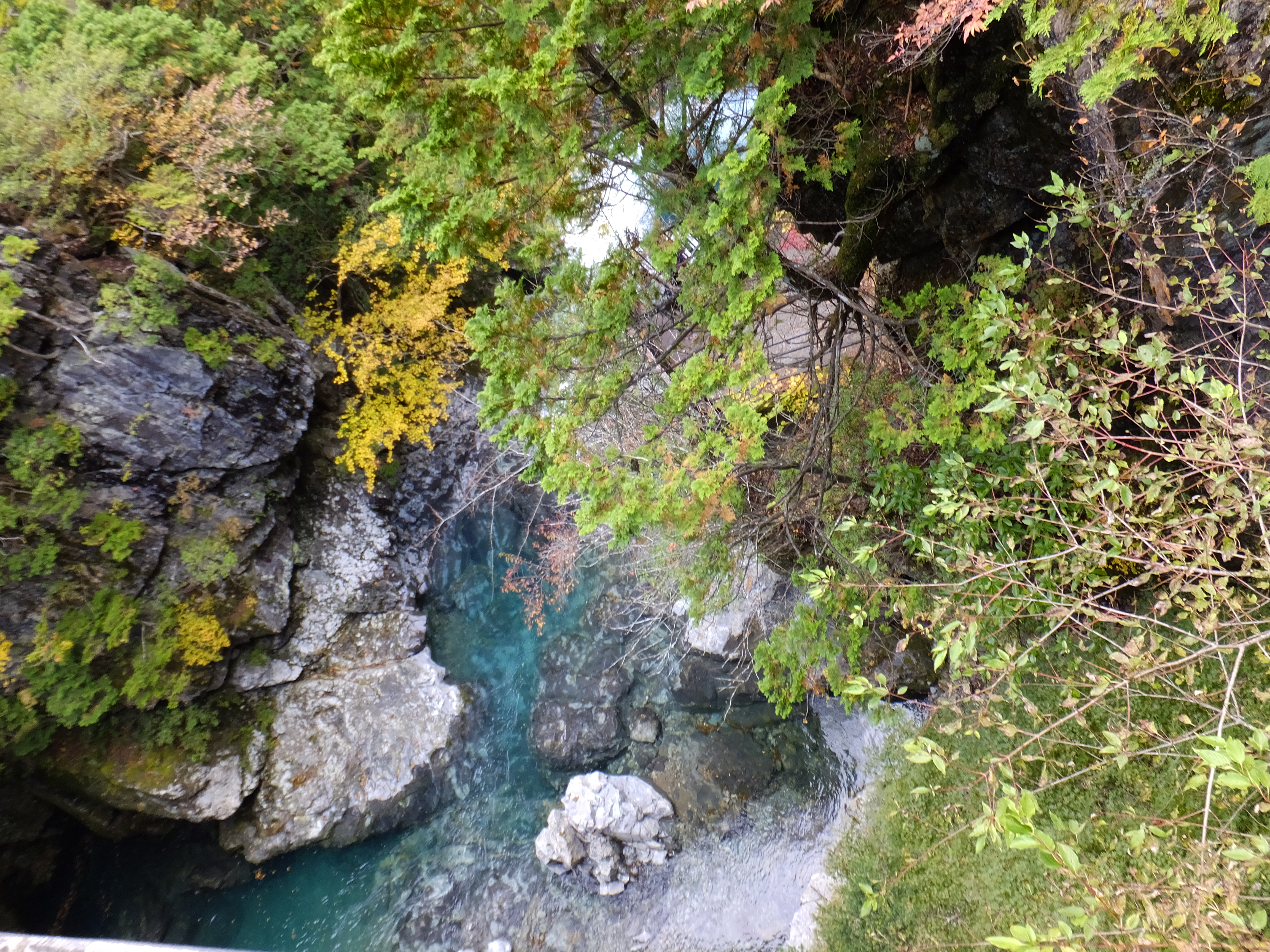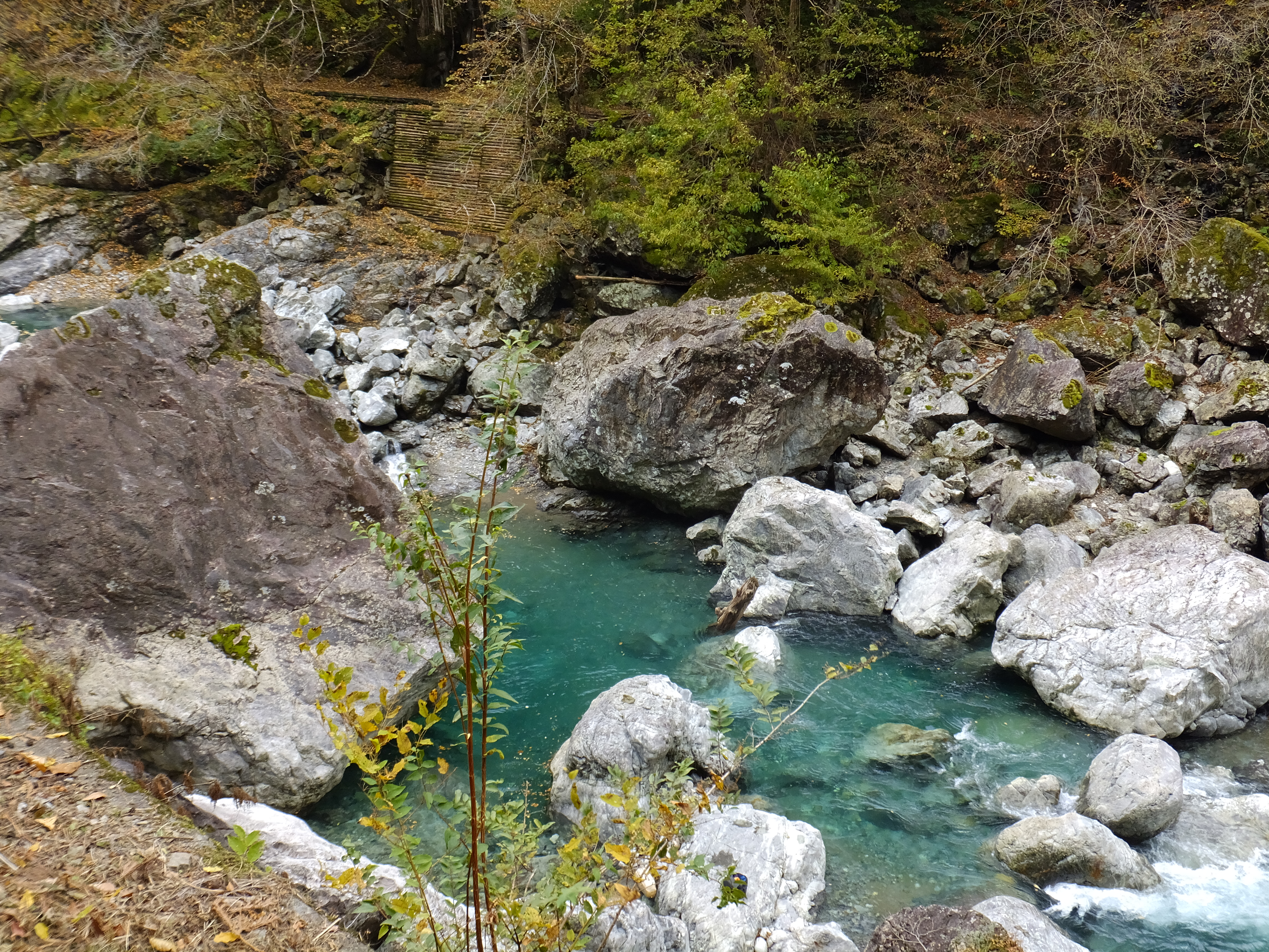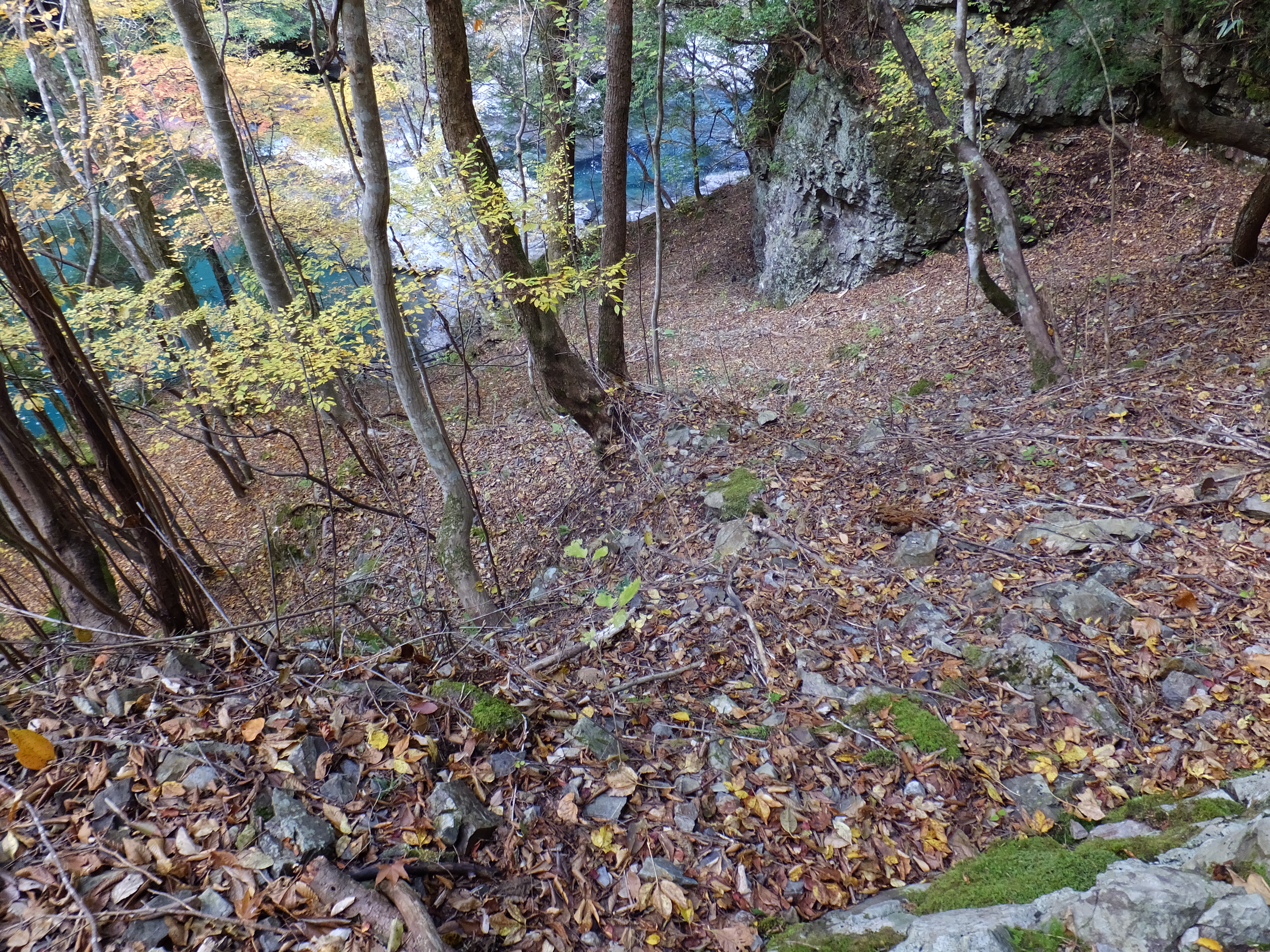 遊歩道入り口から階段になっており、上がっていくとこの風景!上から見ると滝になっていて岩もごつごつしててすごい渓谷!それと紅葉がマッチしてます。