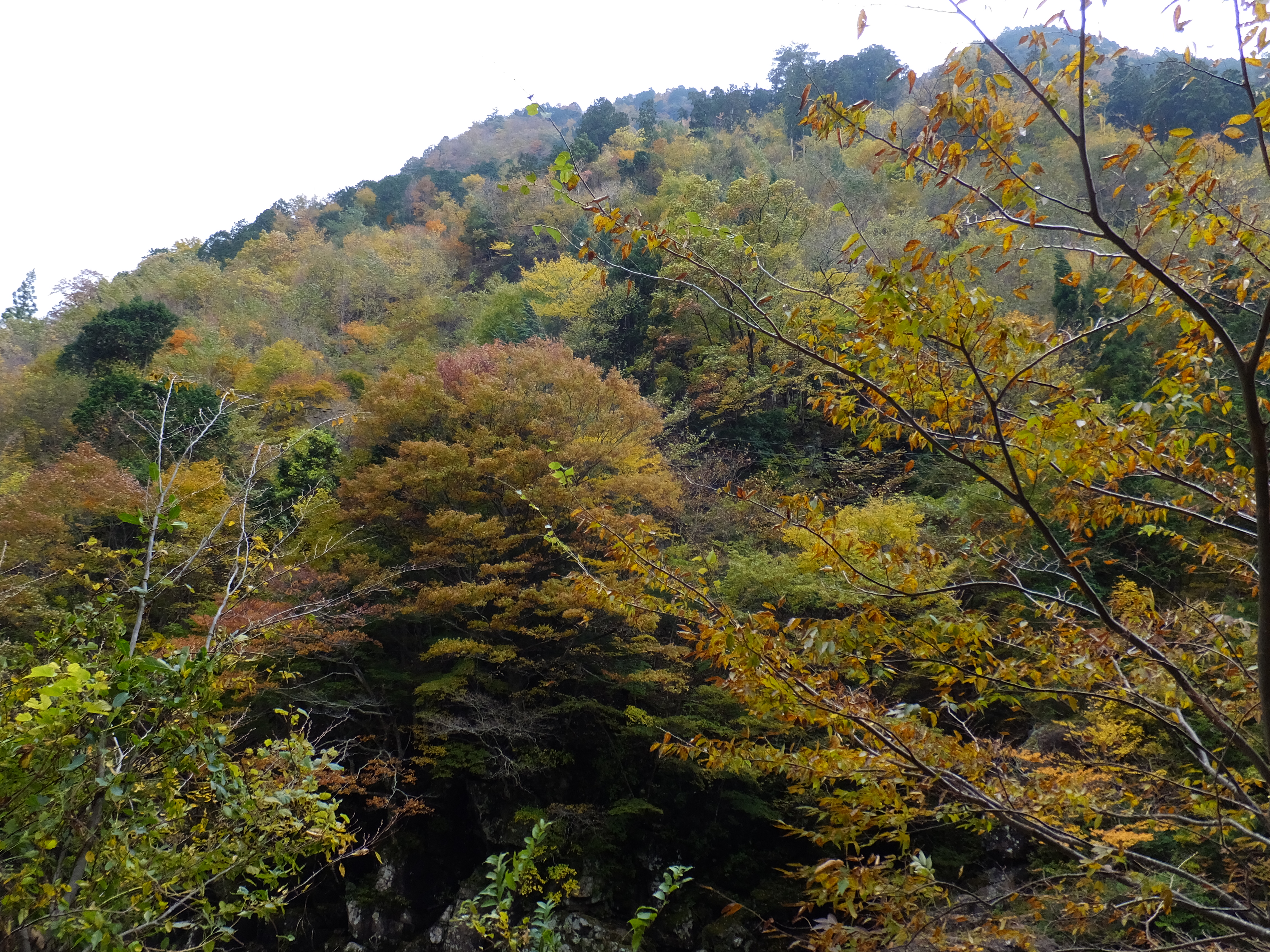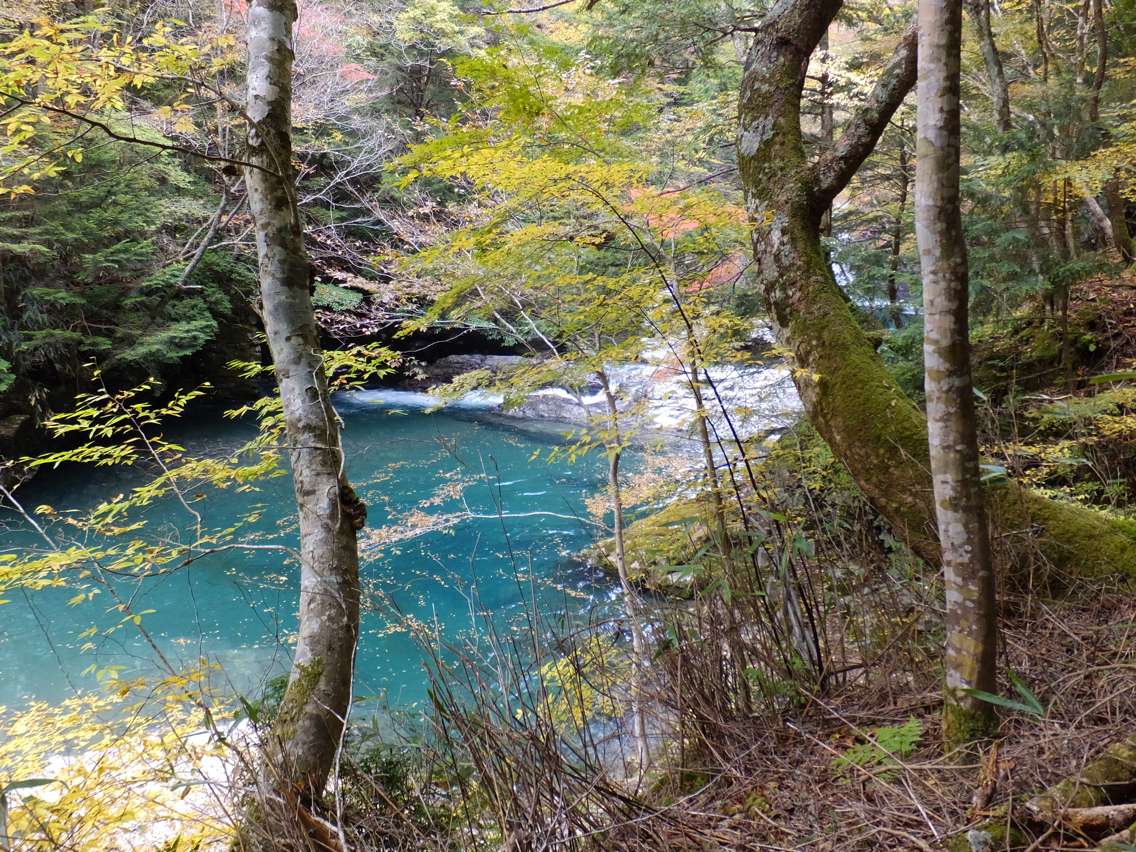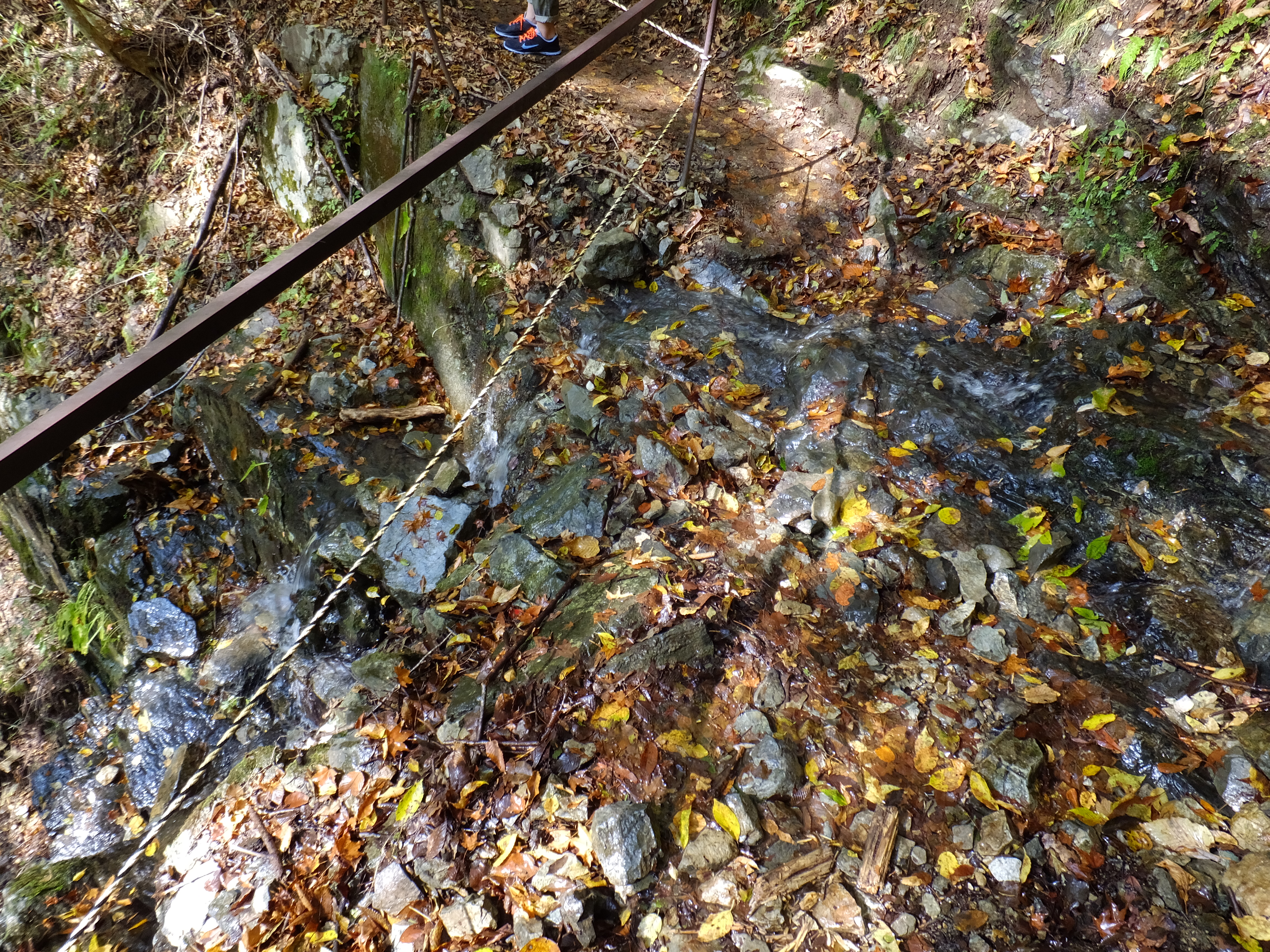 水もきれいで流れも清らか、紅葉とのコントラストも最高でしょ?実際に行ってみてもらえればわかると思いますが、何時間でも眺められる感じです。そのあとも遊歩道を歩いていくと結構登っていきます。この日は曇り空だったのですがすっかり体もあったまってきて勝手に準備万端(笑)