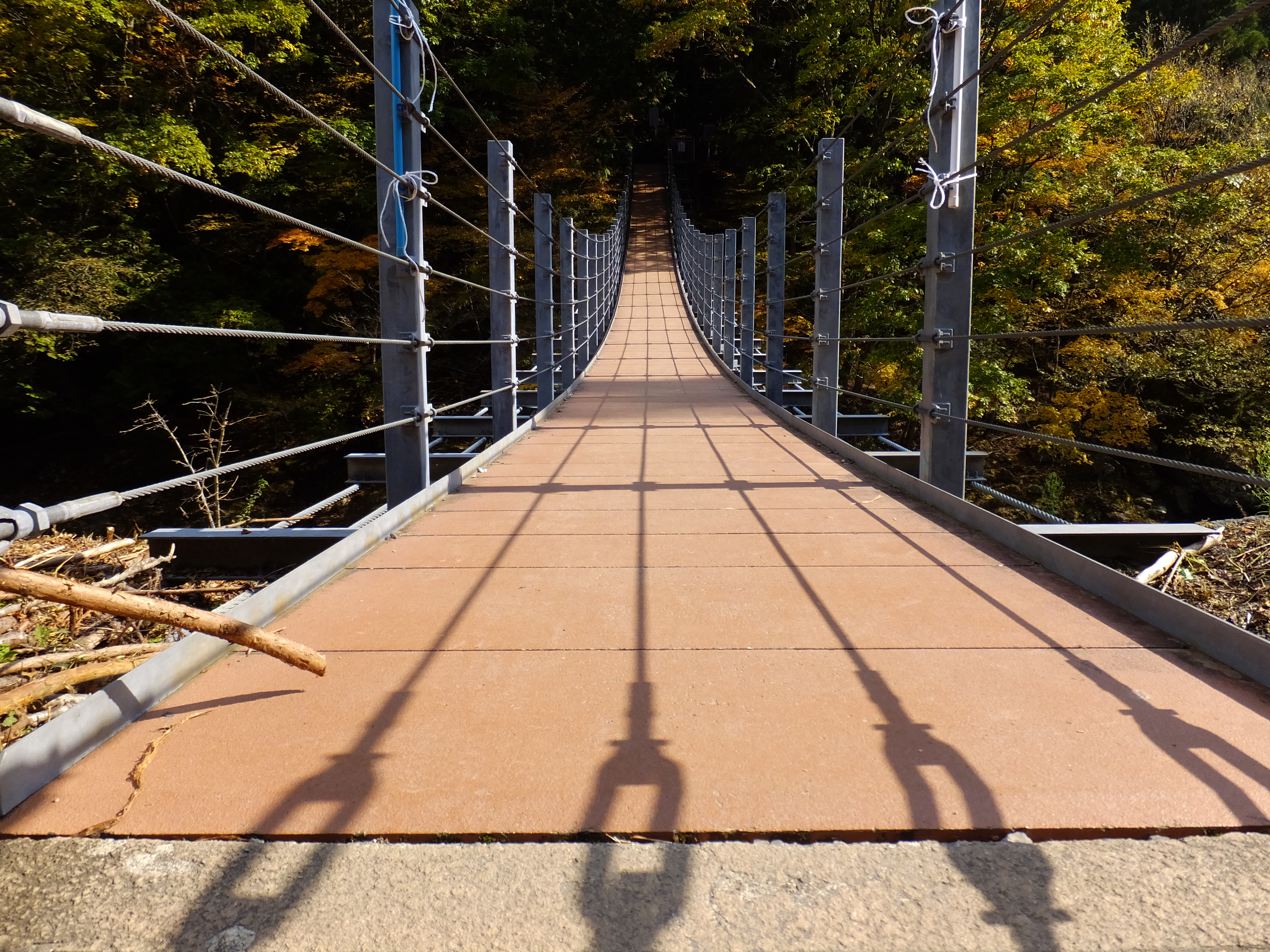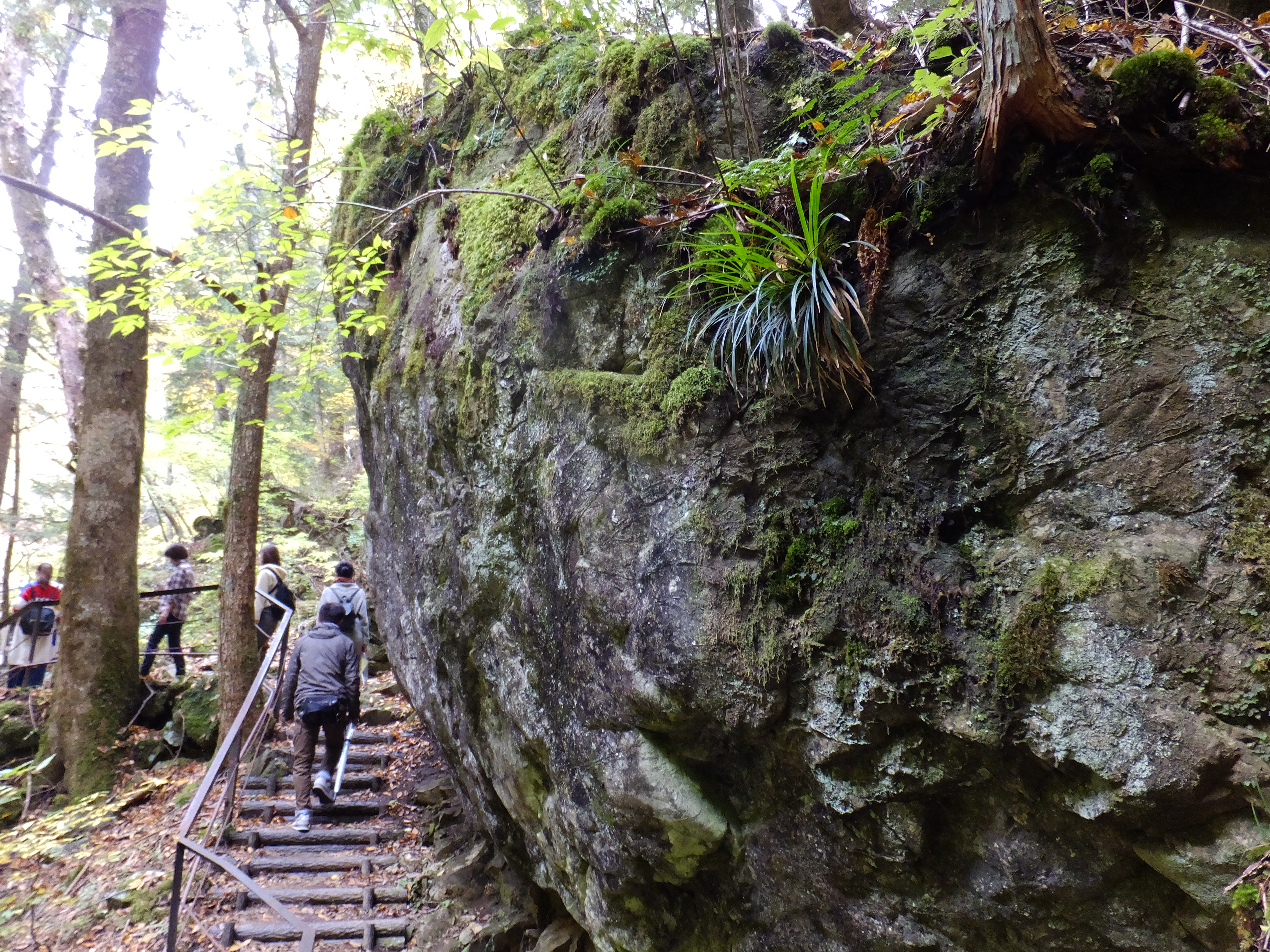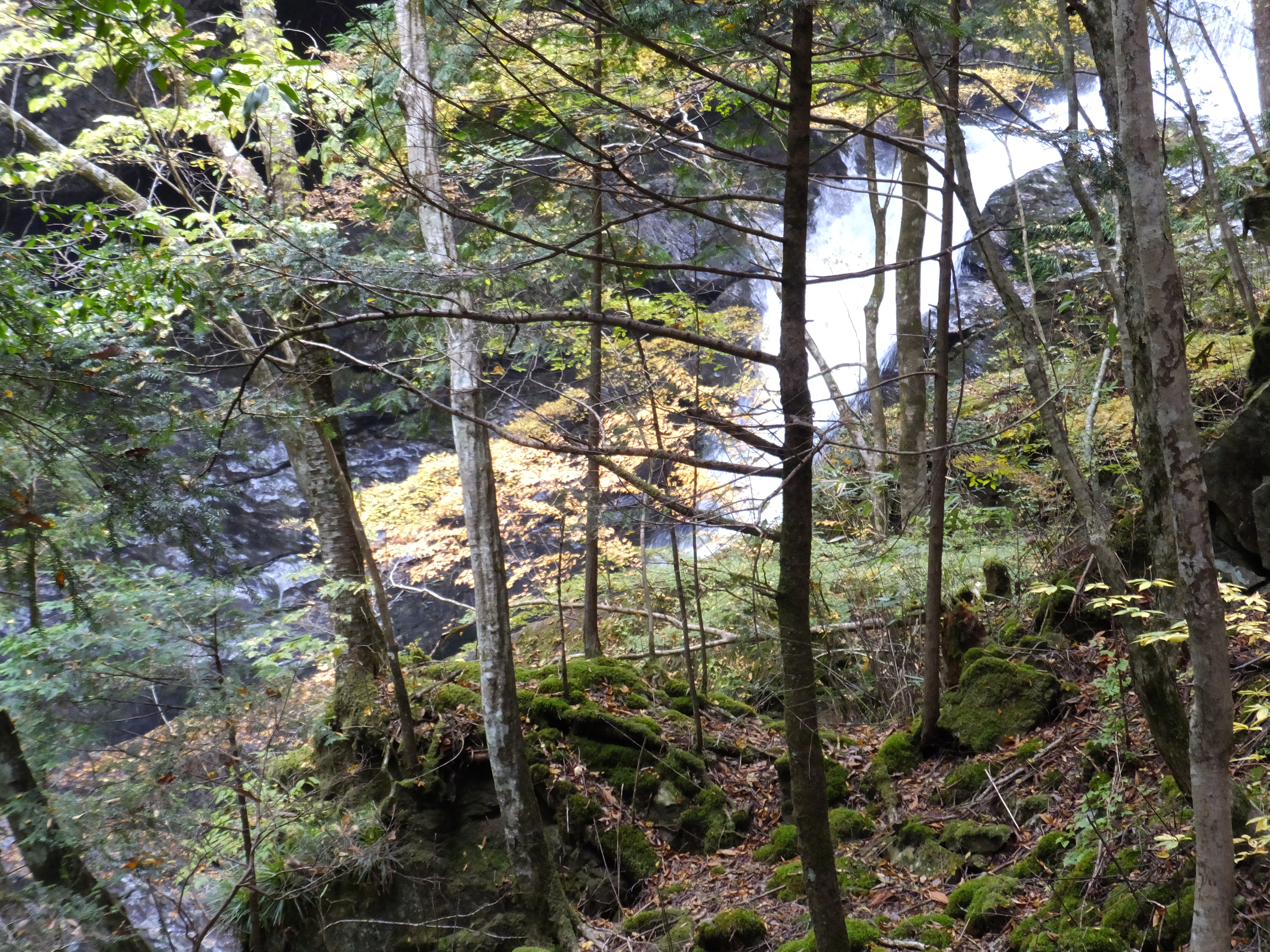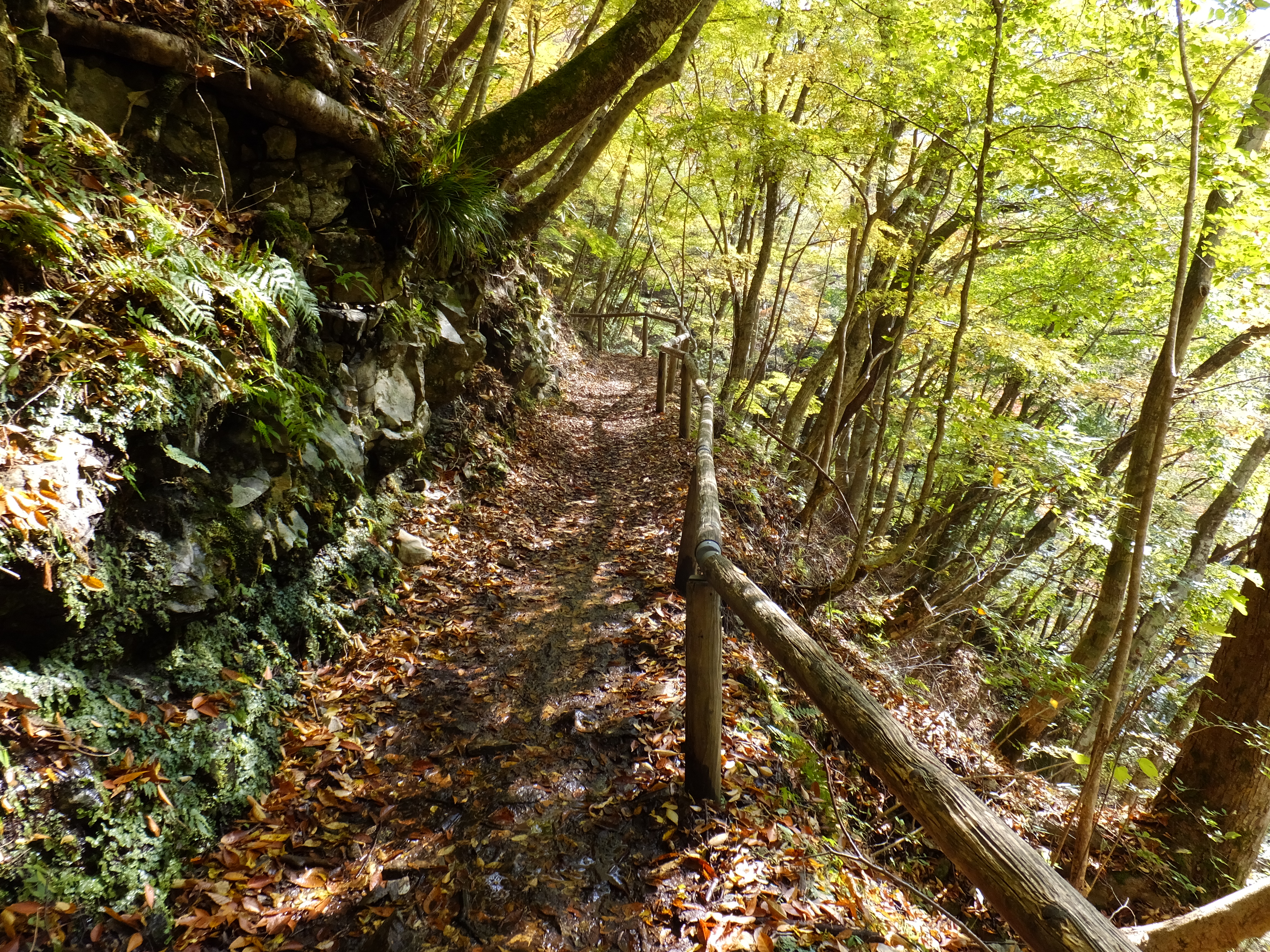 水もきれいで流れも清らか、紅葉とのコントラストも最高でしょ?実際に行ってみてもらえればわかると思いますが、何時間でも眺められる感じです。そのあとも遊歩道を歩いていくと結構登っていきます。この日は曇り空だったのですがすっかり体もあったまってきて勝手に準備万端(笑)