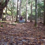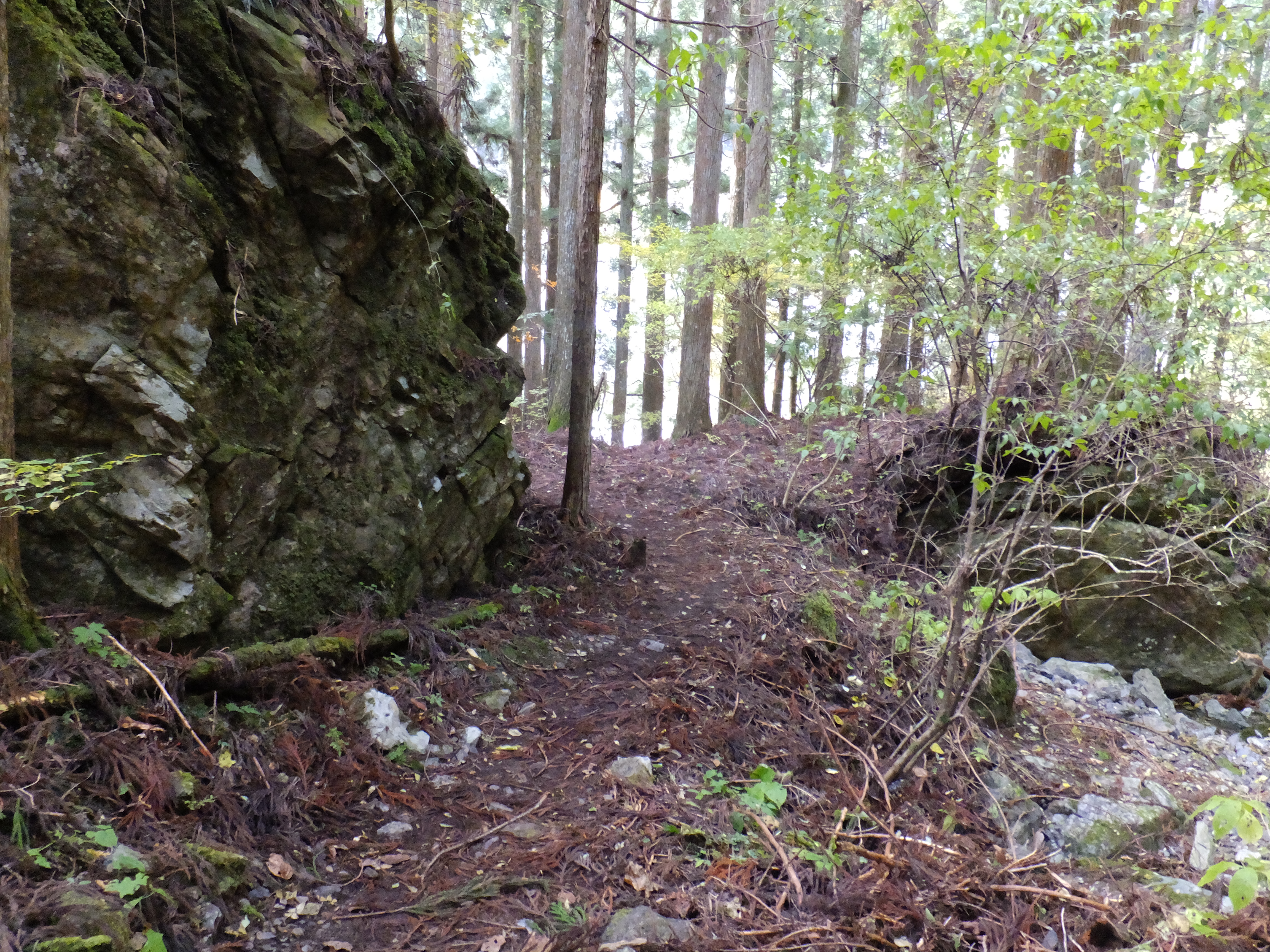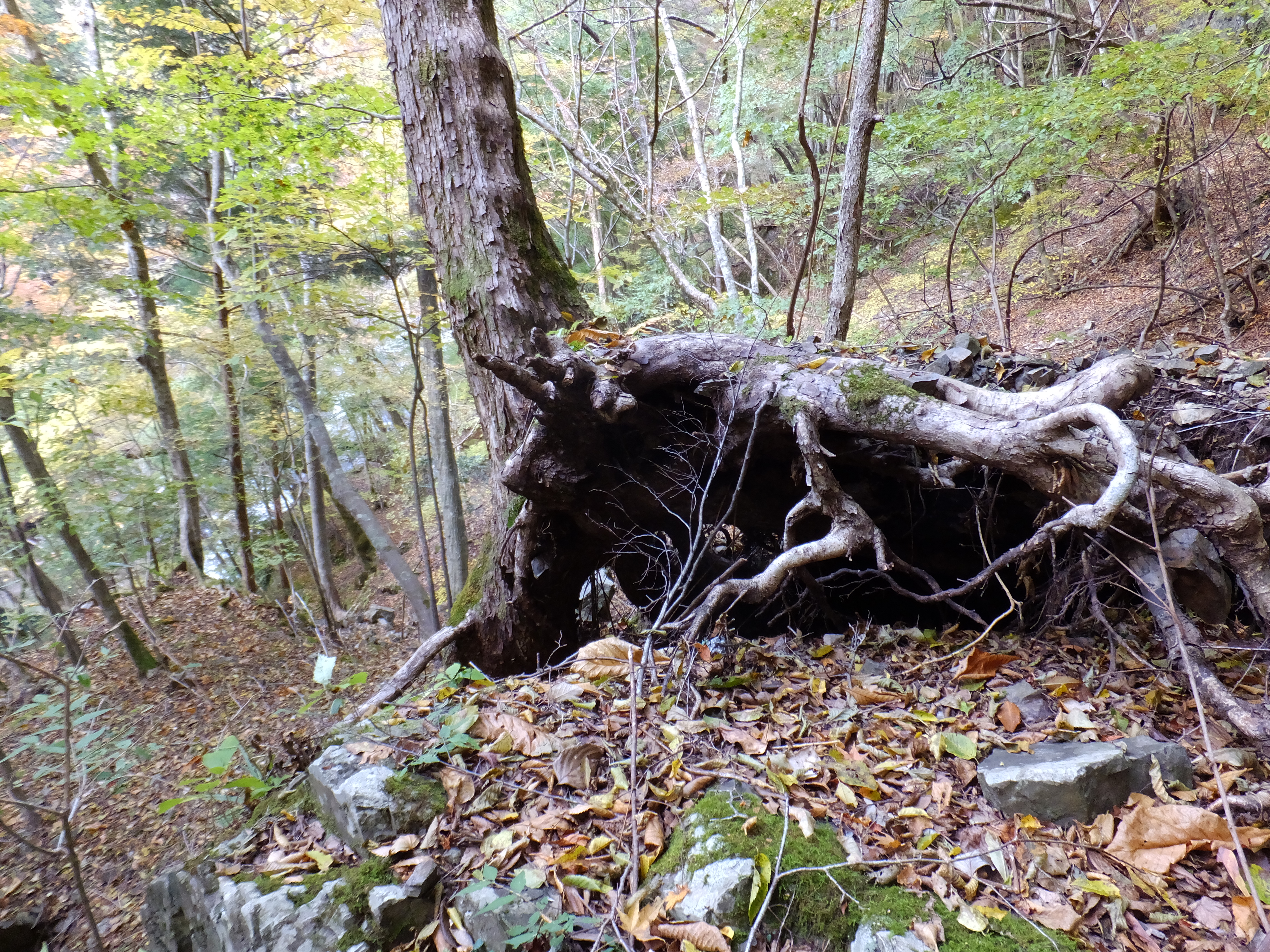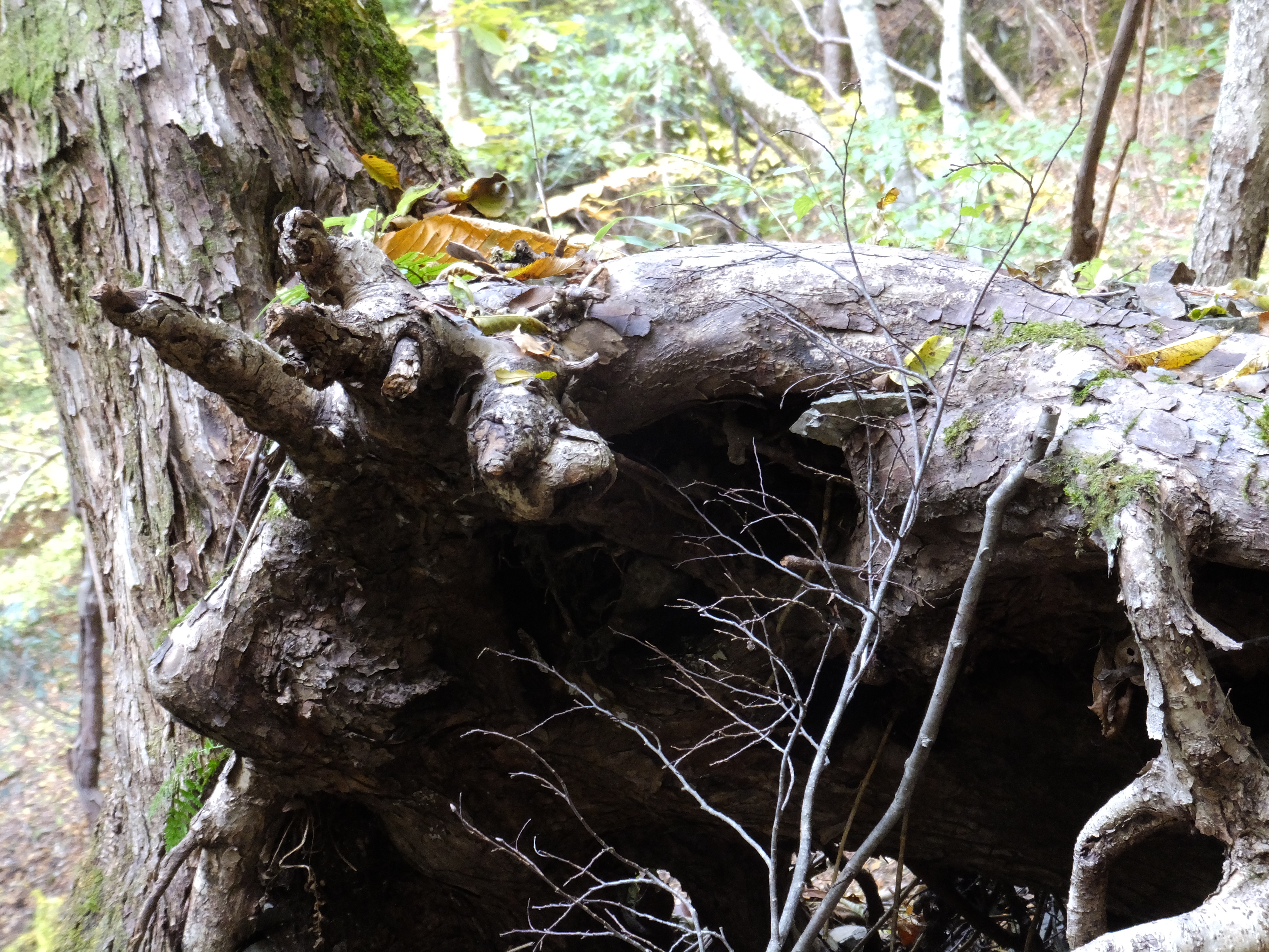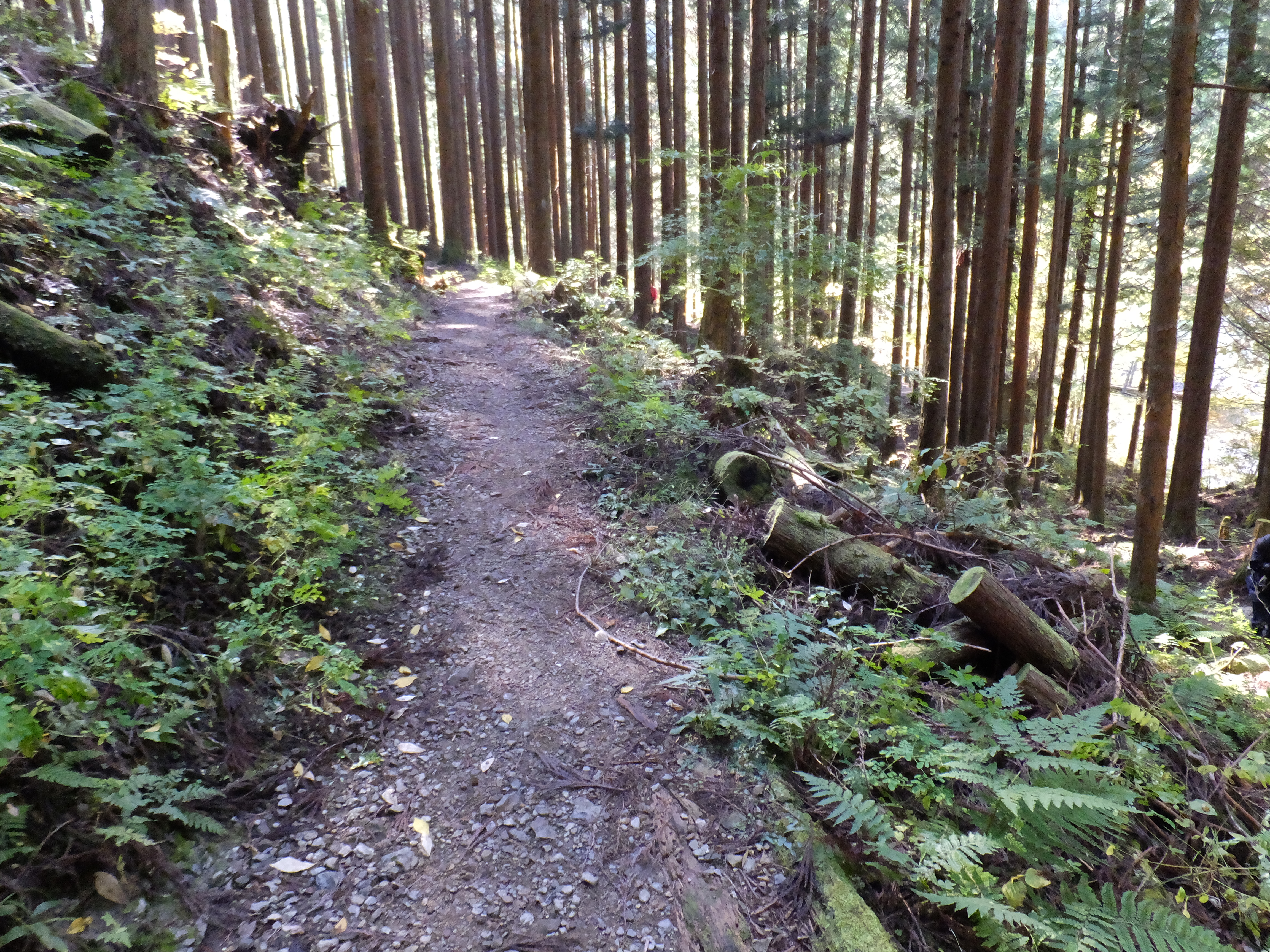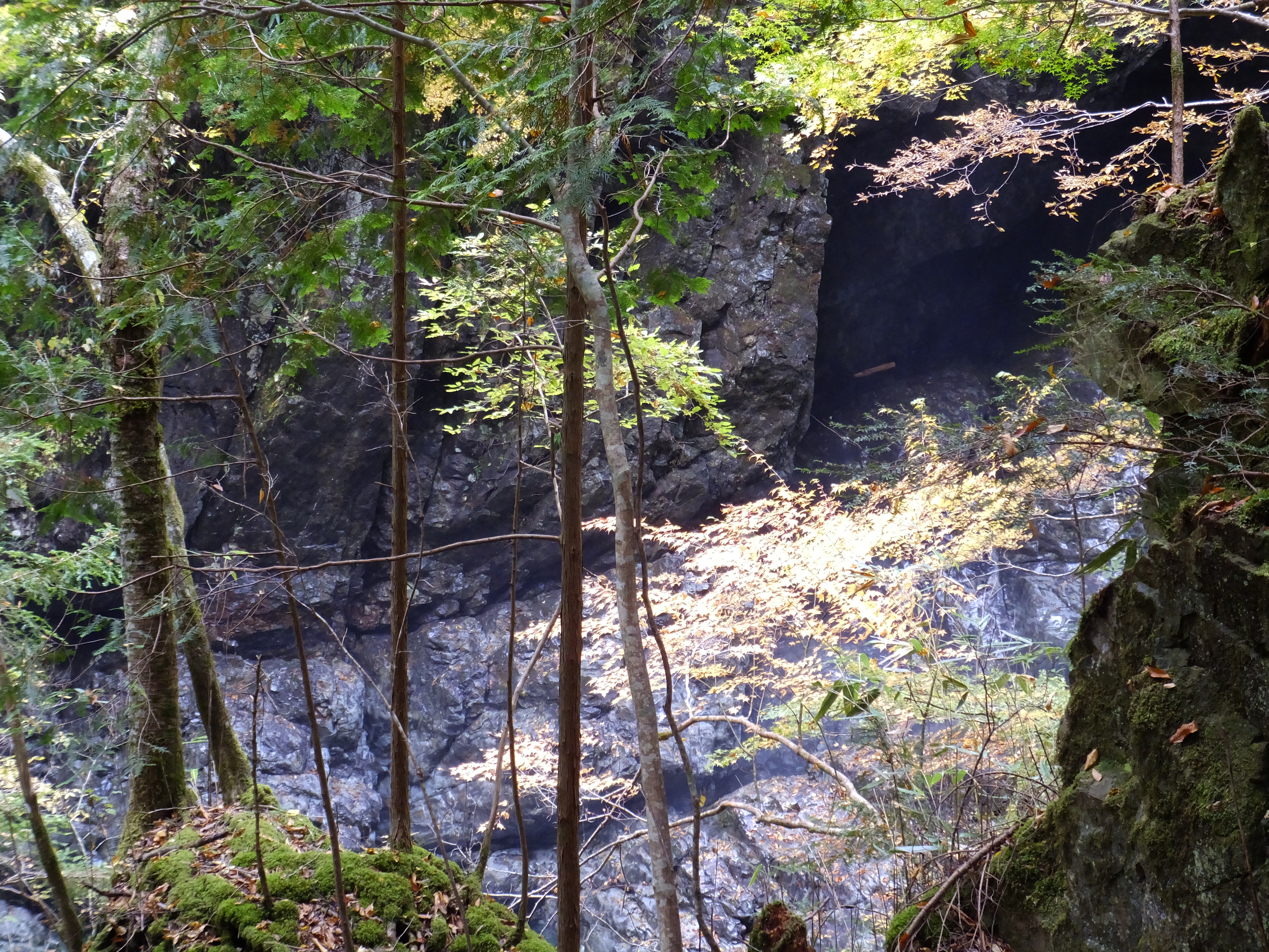ちょっと道路沿いを歩くとまた遊歩道に入るのですが、ここから紅葉がまったくなしwwずっと杉林を歩きます。歩きやすいところですが紅葉もなくすでに1時間以上歩いていて、友人、、、いや神人との会話もなく無言の時間wいやー疲れてるよねーつき合わせてごめんねー今度ご飯でもおごるからねーと心の中で思っていたら急に鳥居!