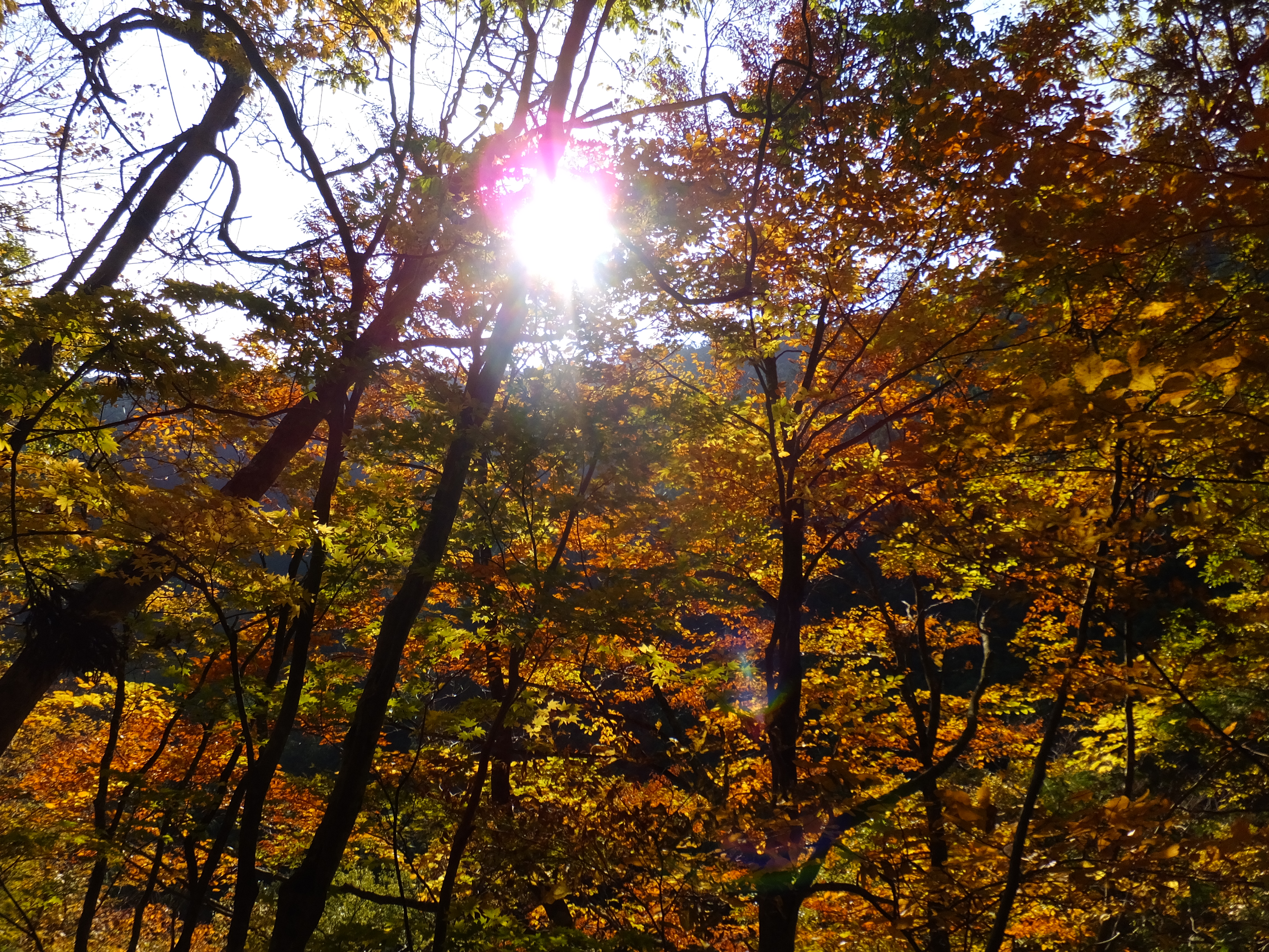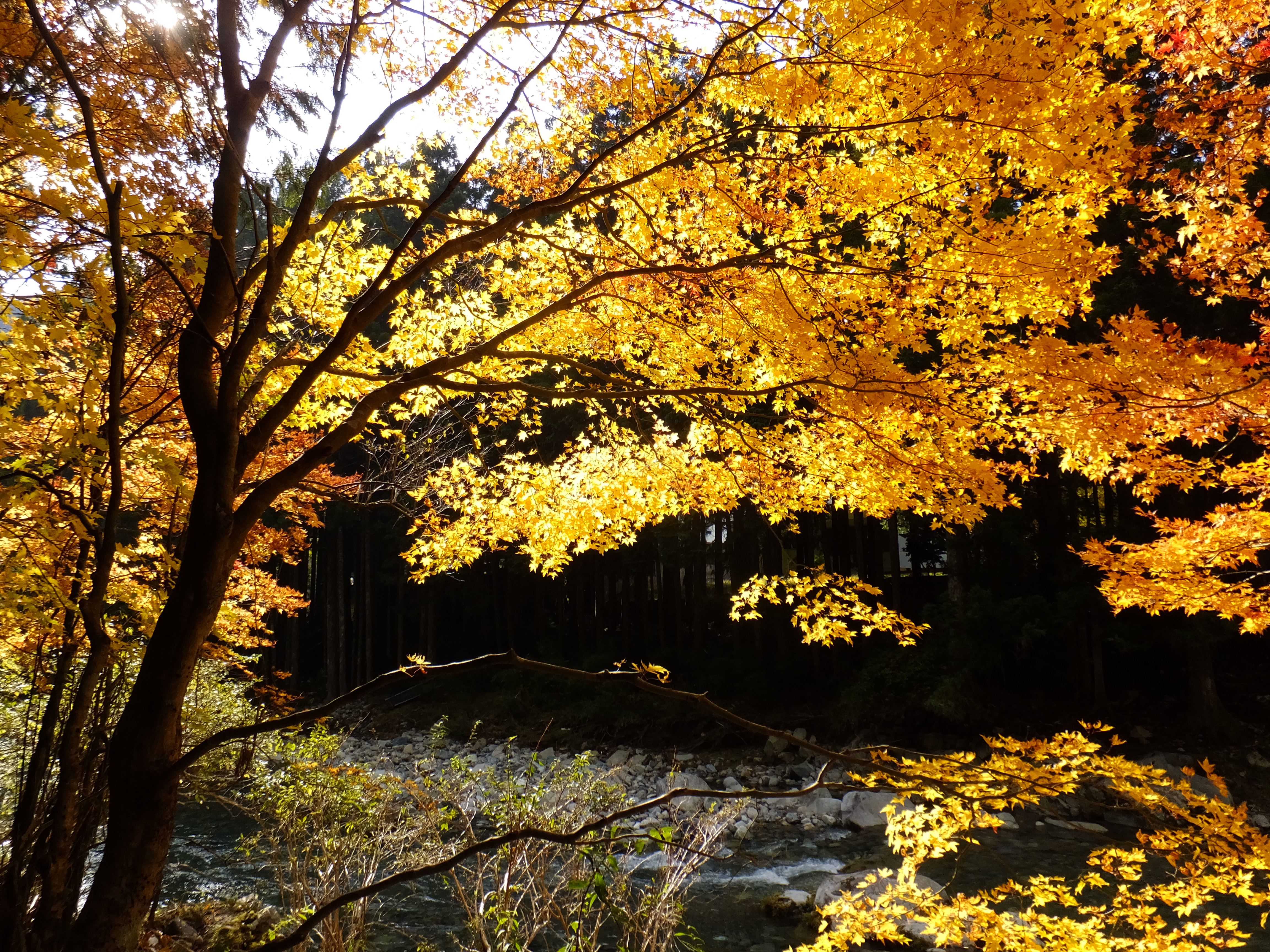 特に秋の紅葉は黄色に赤色にまぶしい光に包まれる。