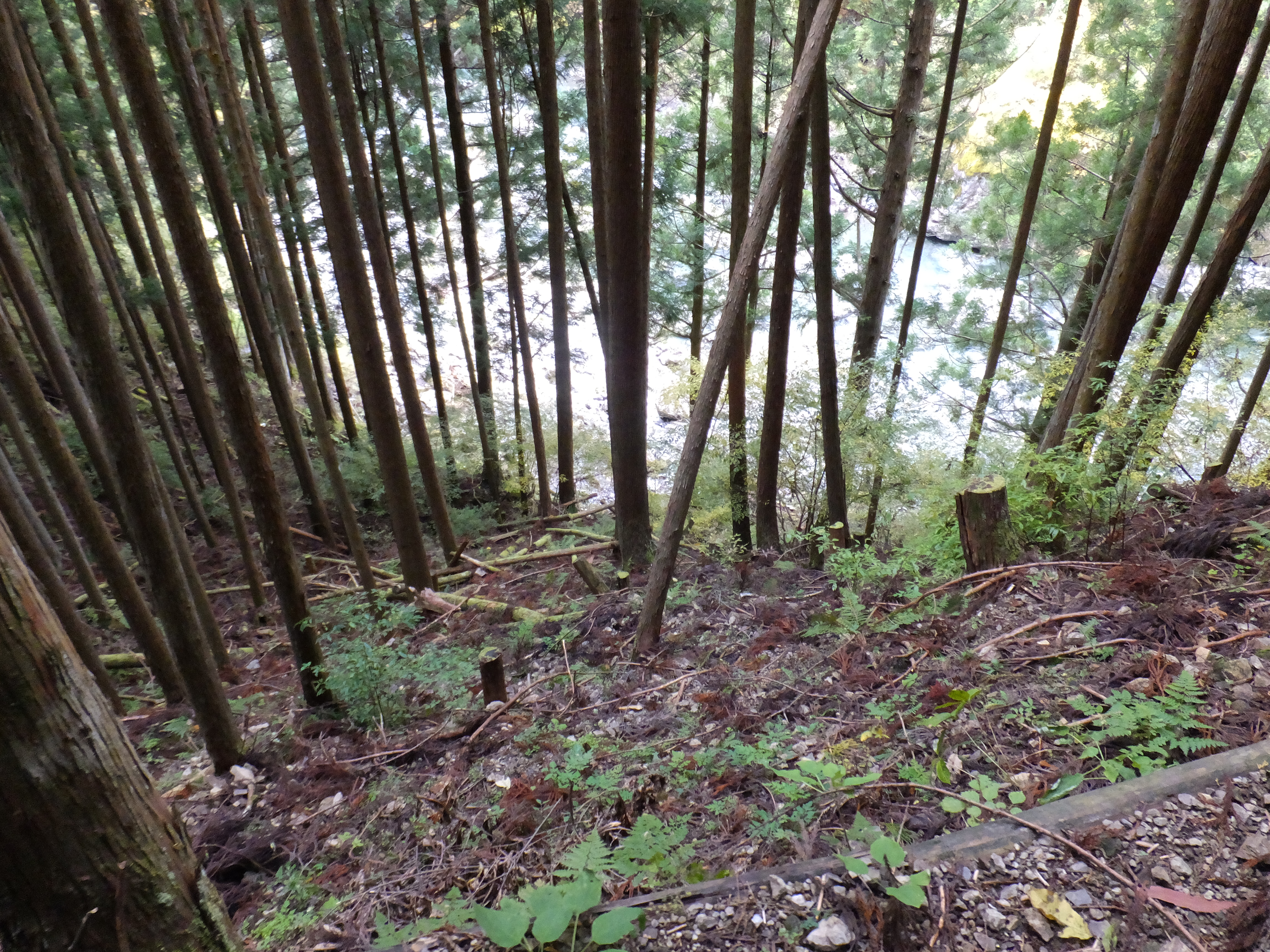 顔なしとお別れしてw元来た道に戻り、また杉林を歩いていると川沿いに出てきました。