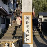 興喜天満神社は近鉄大阪線長谷寺駅から徒歩20分くらいの場所にあります。長谷寺駅を降りてだいたいの方は参道を通り、長谷寺に向かう途中にあり、長い階段を登った先の見晴らしのいいところにありました。ちょうど夕方に行ったので初瀬谷の夕暮れがとても綺麗でした