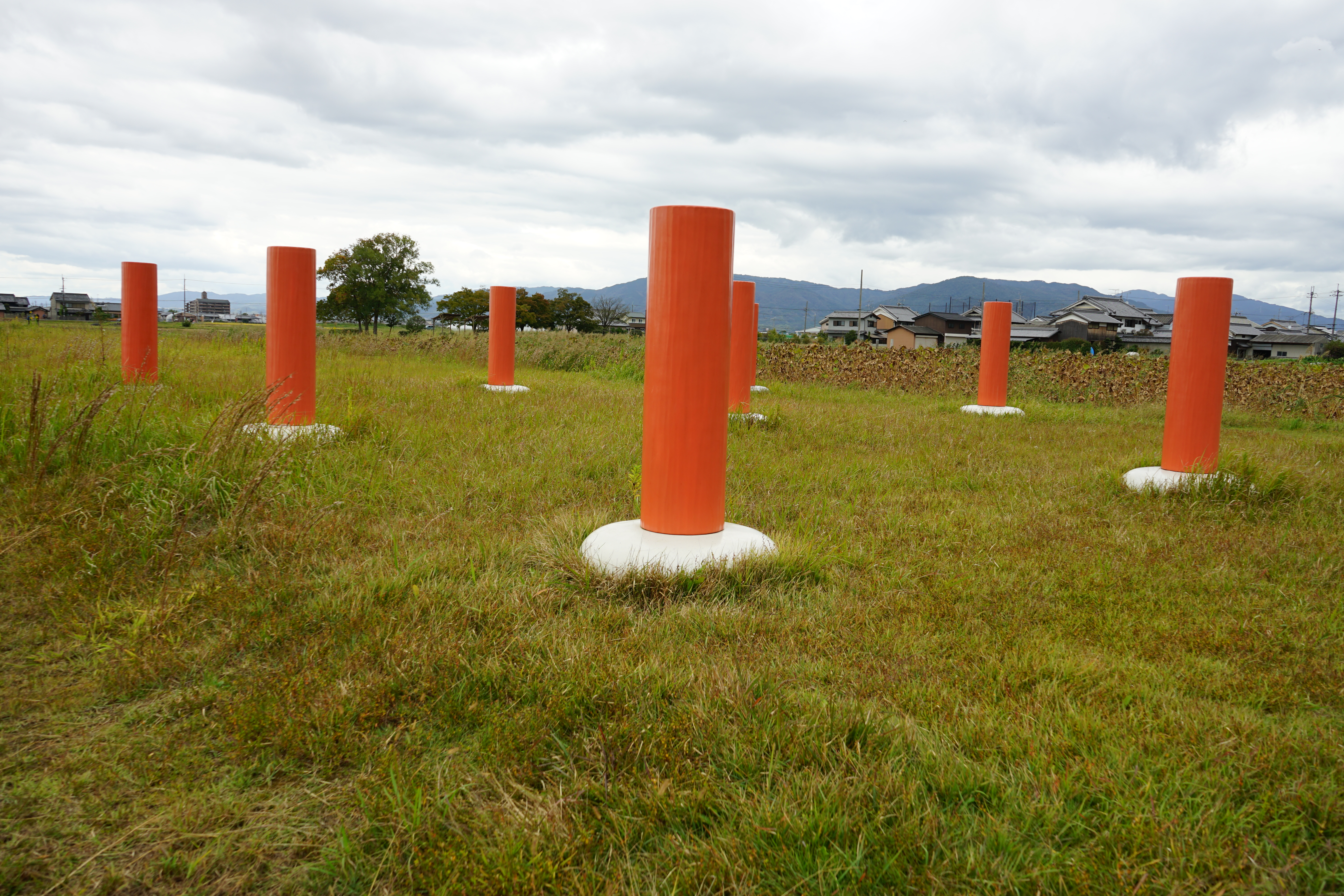 藤原京跡に行こうとなると、日本書紀を読んで歴史的風景を考えてこの大地にたたずみ、1300年前の都に思うのが普通だと思いませんか?本当にこの場所へ来ていただくとわかるのですが、東西南北が約5kmほどの敷地には、この支柱が何本か建っている(建設されている)以外は何もなく、大和三山がきれいに見れます。