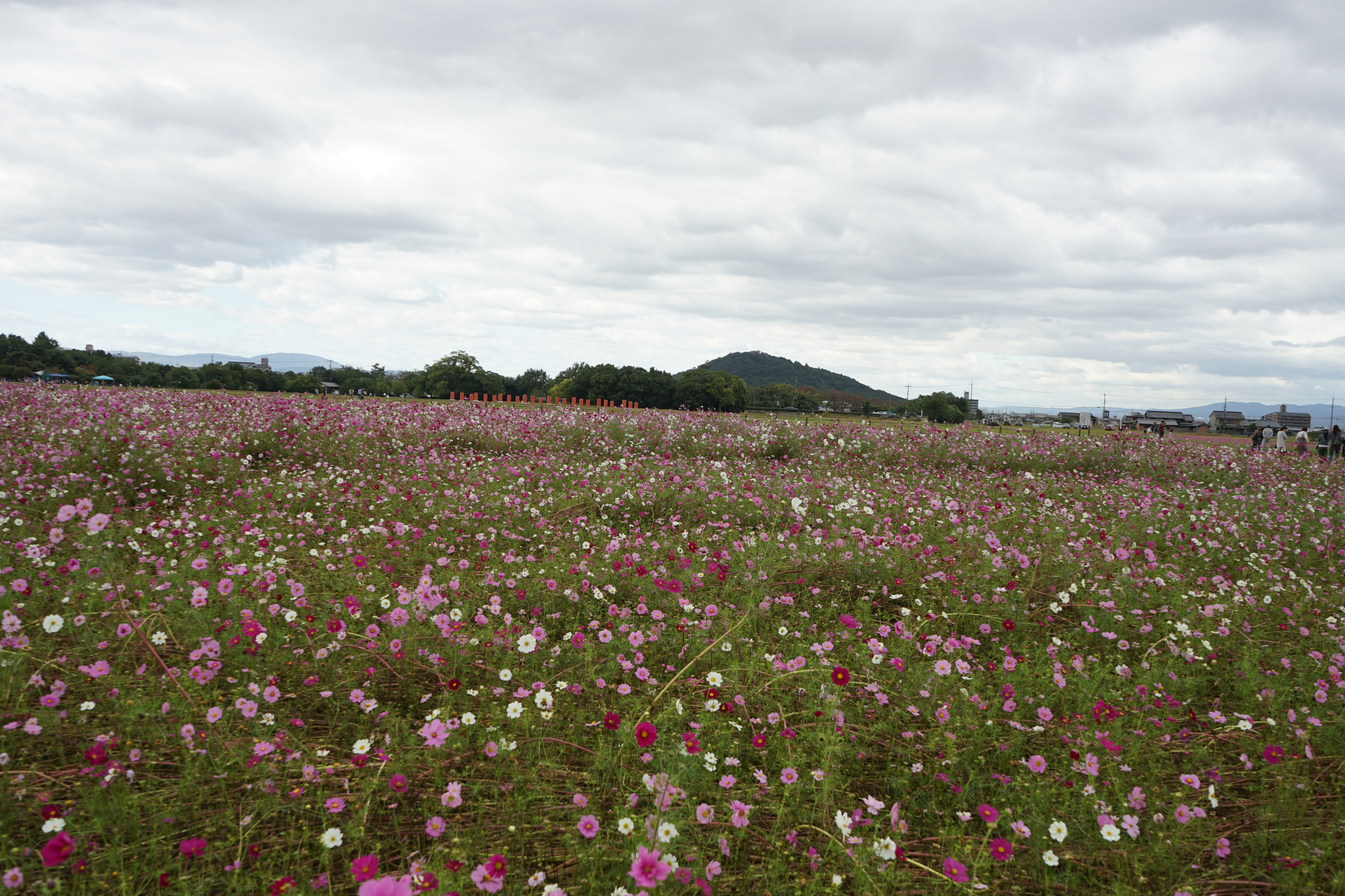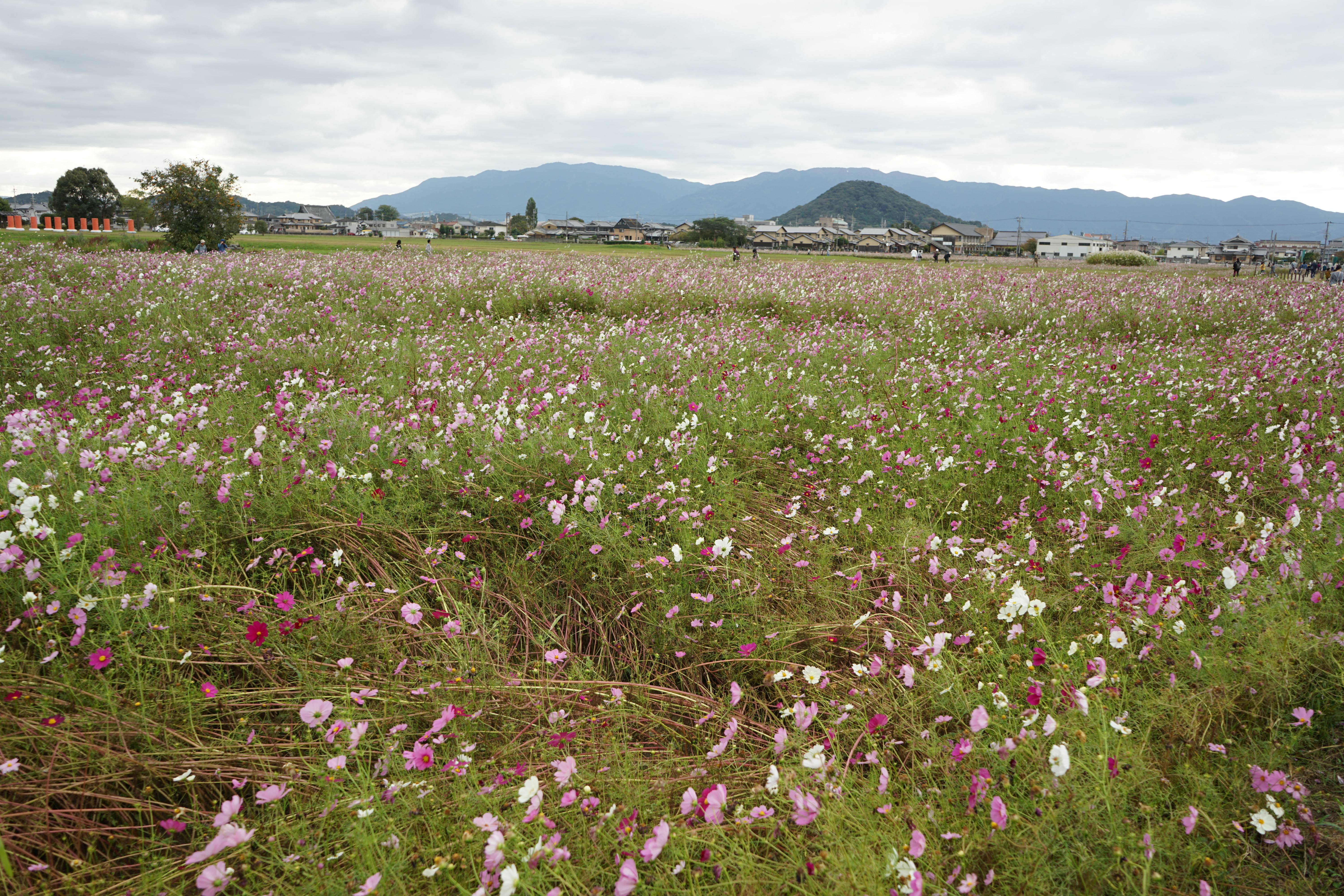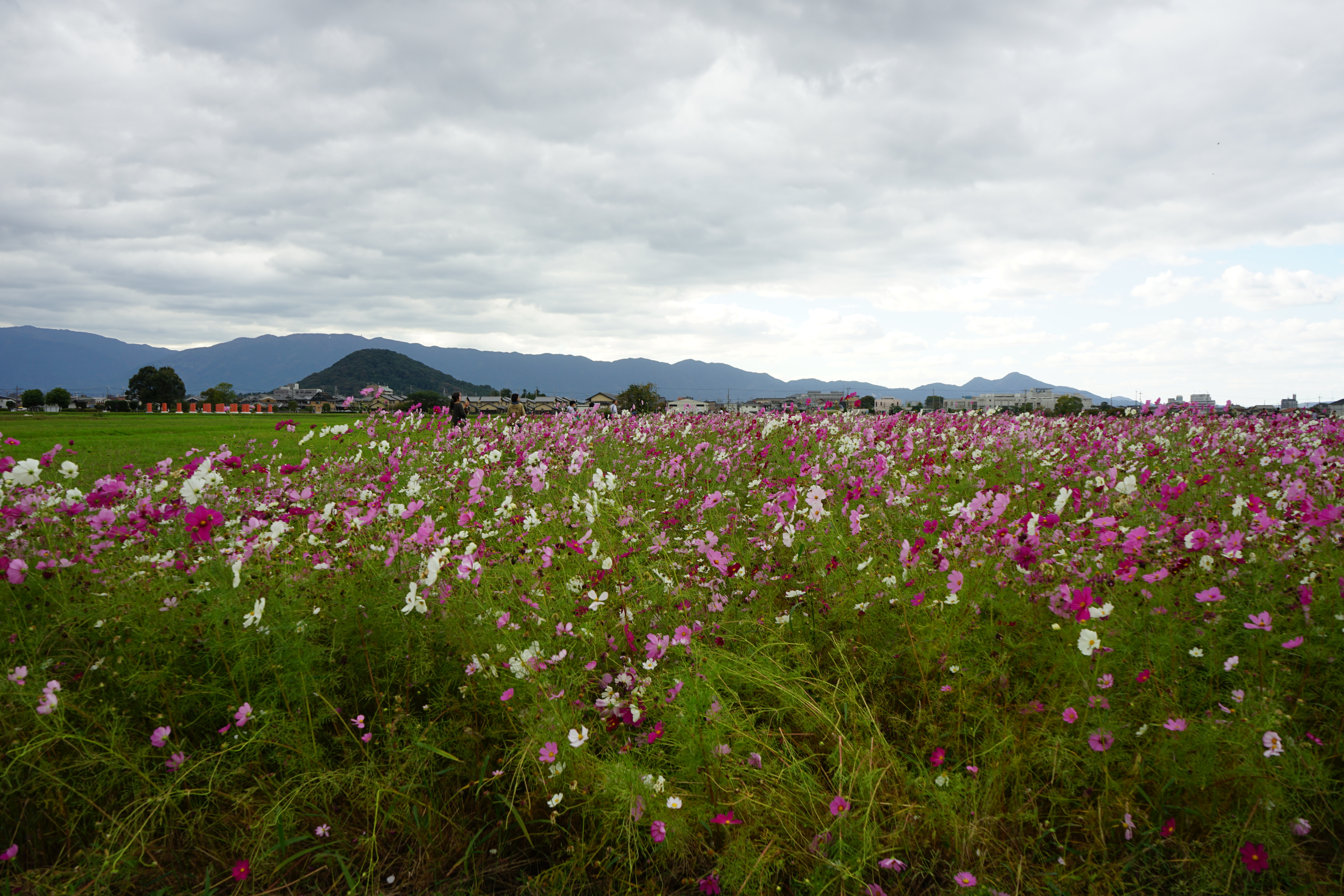 コスモスが見たい!!と、秋にふと思ったら来ないといけない場所が橿原市にあります。みなさん日本書紀はご存知ですか?その日本の歴史的資料に書かれている、日本ではじめて都が置かれた場所、藤原京跡が秋にはコスモス畑になってるんです!