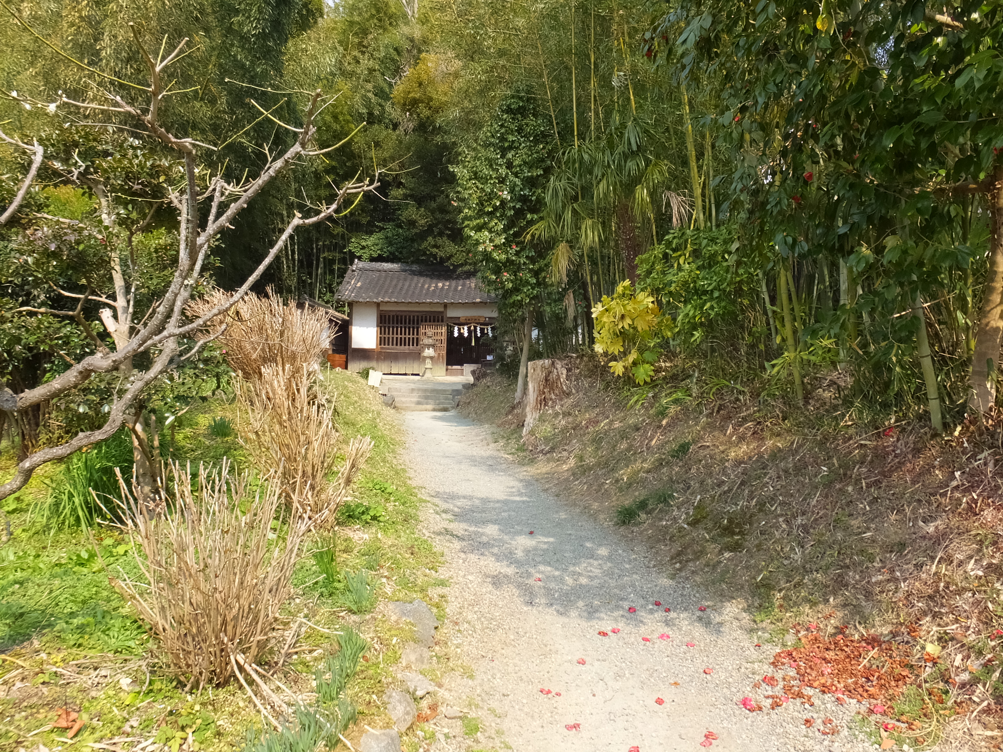 村社に比べて立派な入口です。鳥居から神社まで小道を歩きます。この歩いて数十秒の距離がわくわくします。