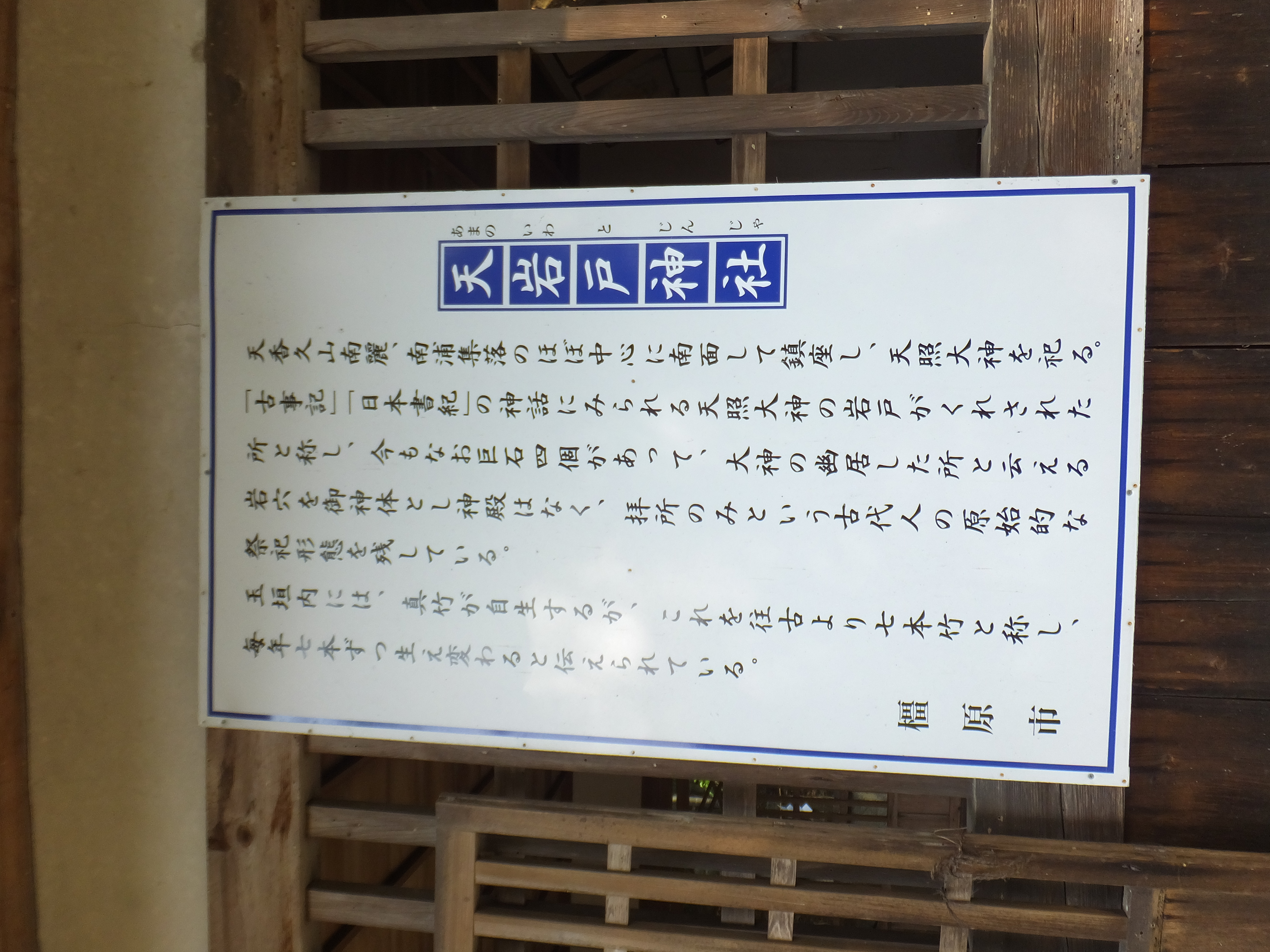 橿原市の天岩戸はそこまで有名ではありませんが、全国にたくさんある天岩戸伝説の1つで、天の香久山には現在も岩戸があるそうです。