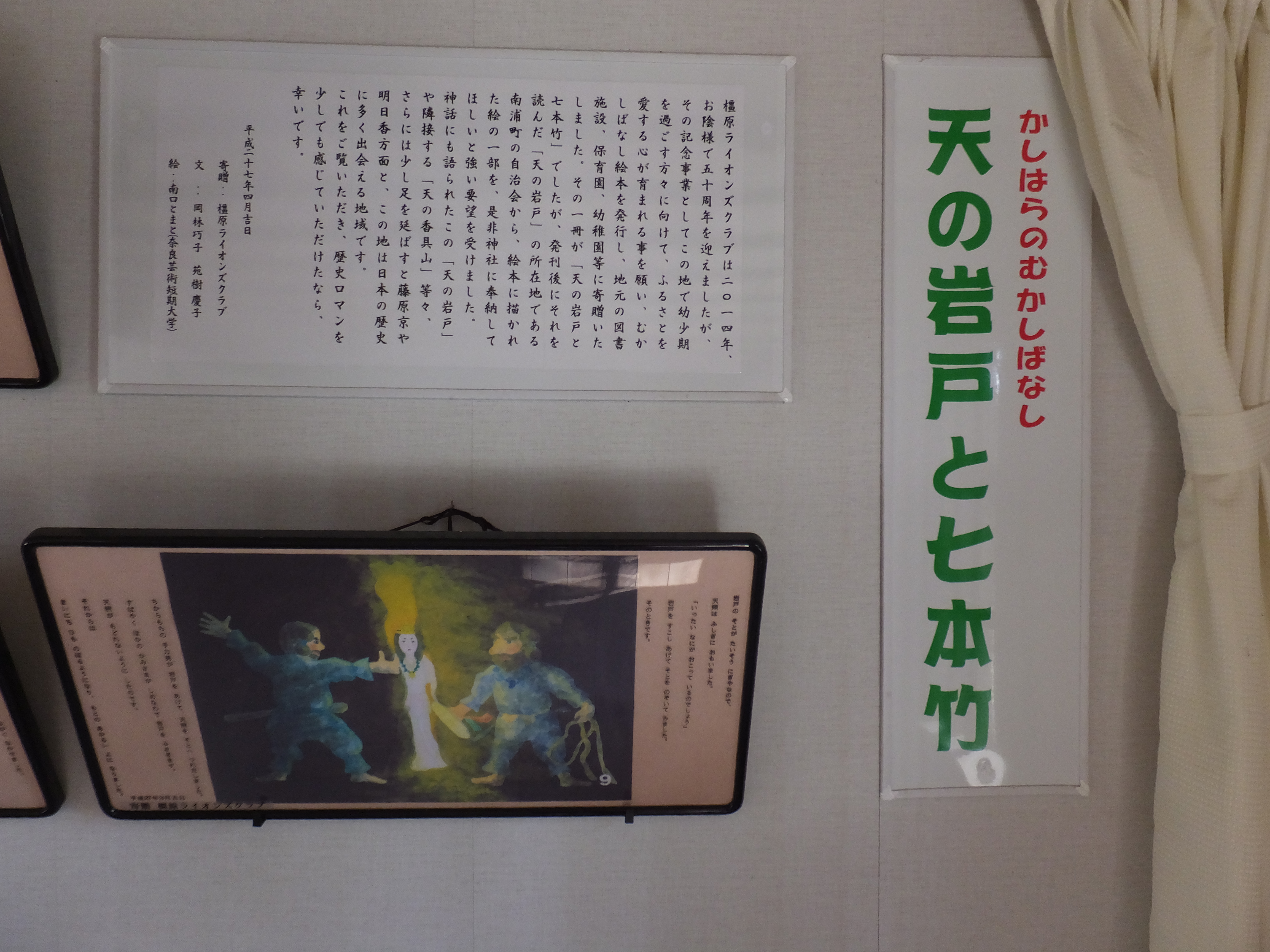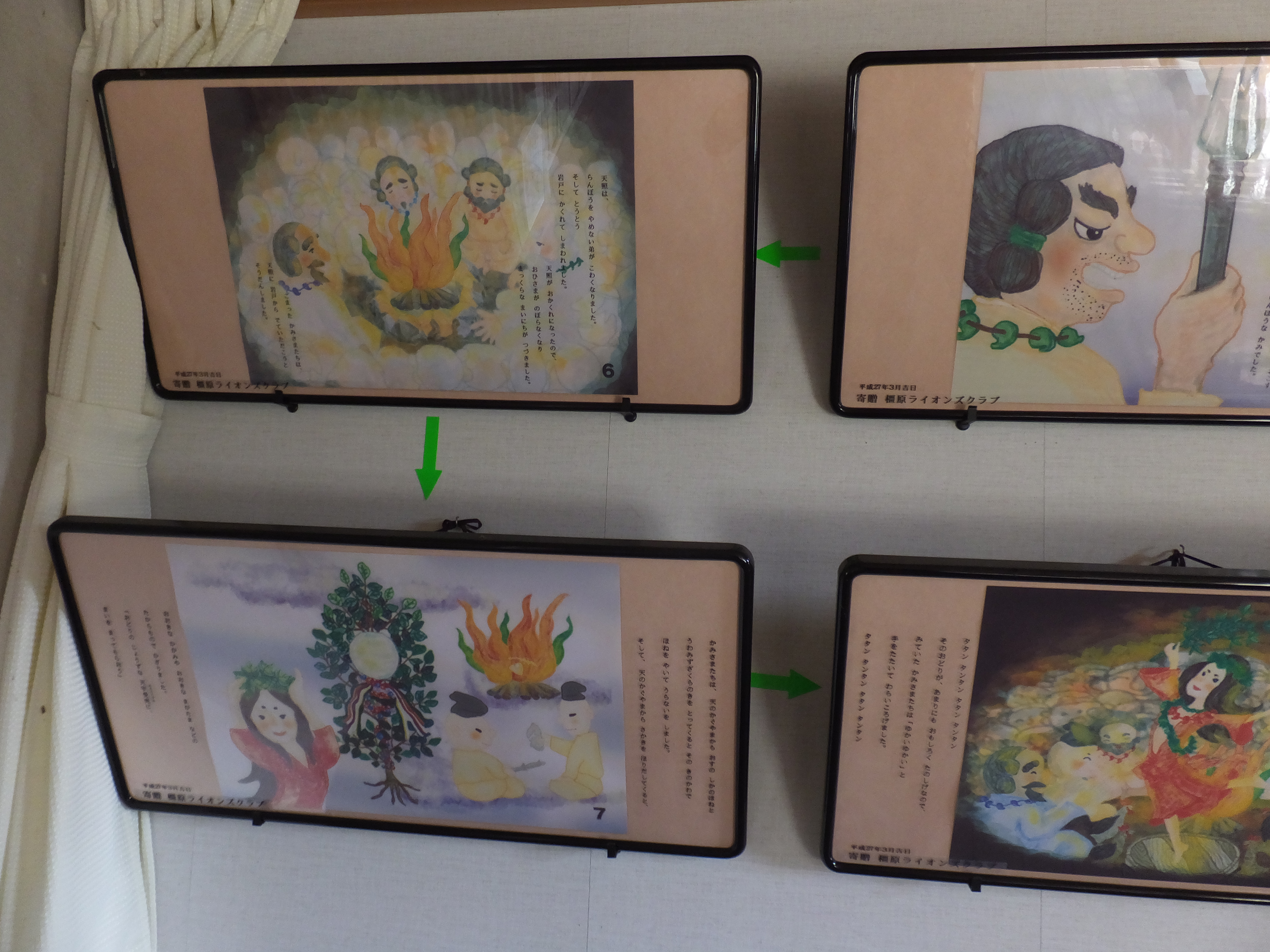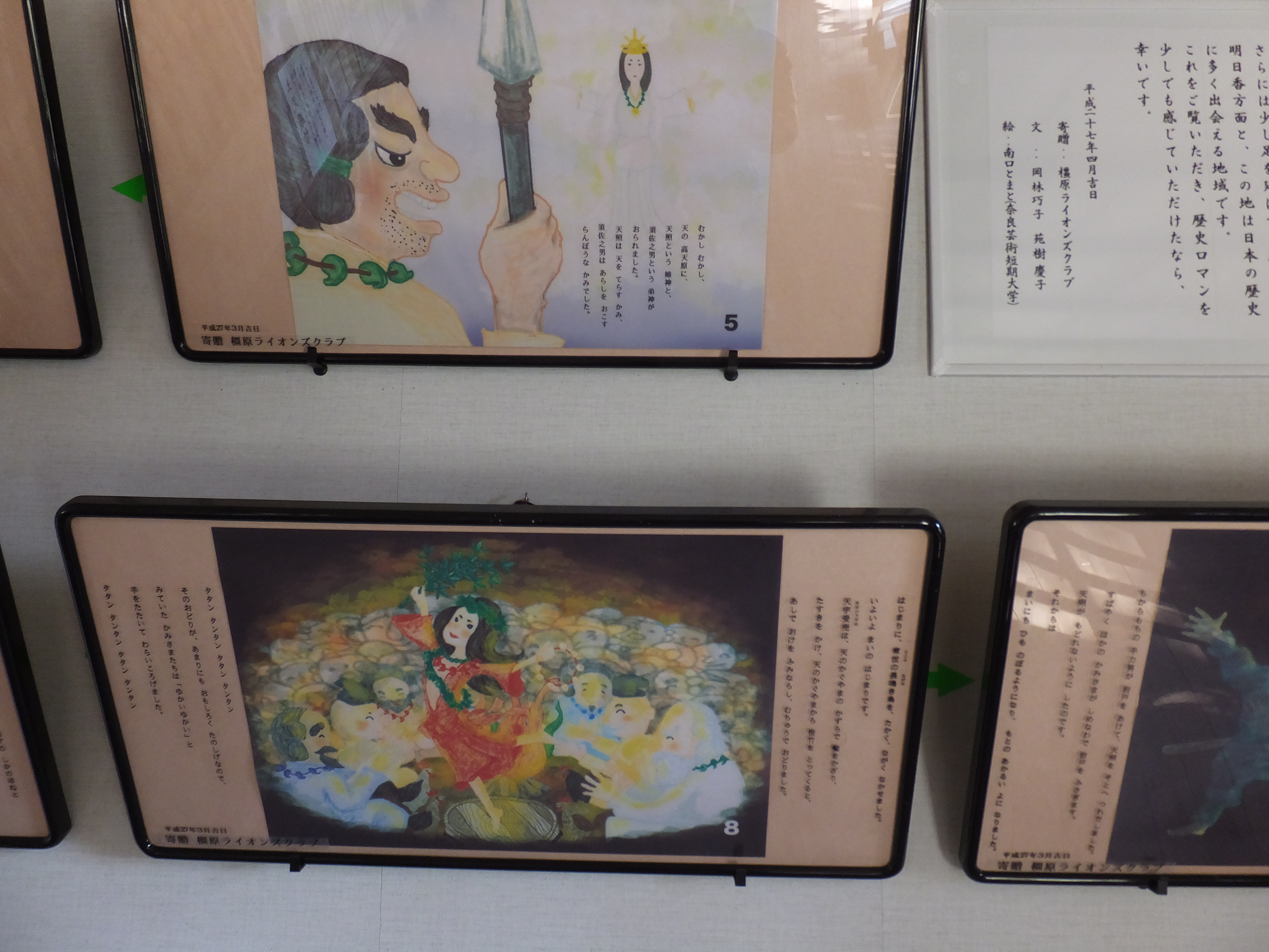 やはりというか、当たり前というか、天岩戸ならではというか、神社の中はそういった伝説の話などや天照大神にまつわることやさきほど書いた七本竹の絵が飾ってました。