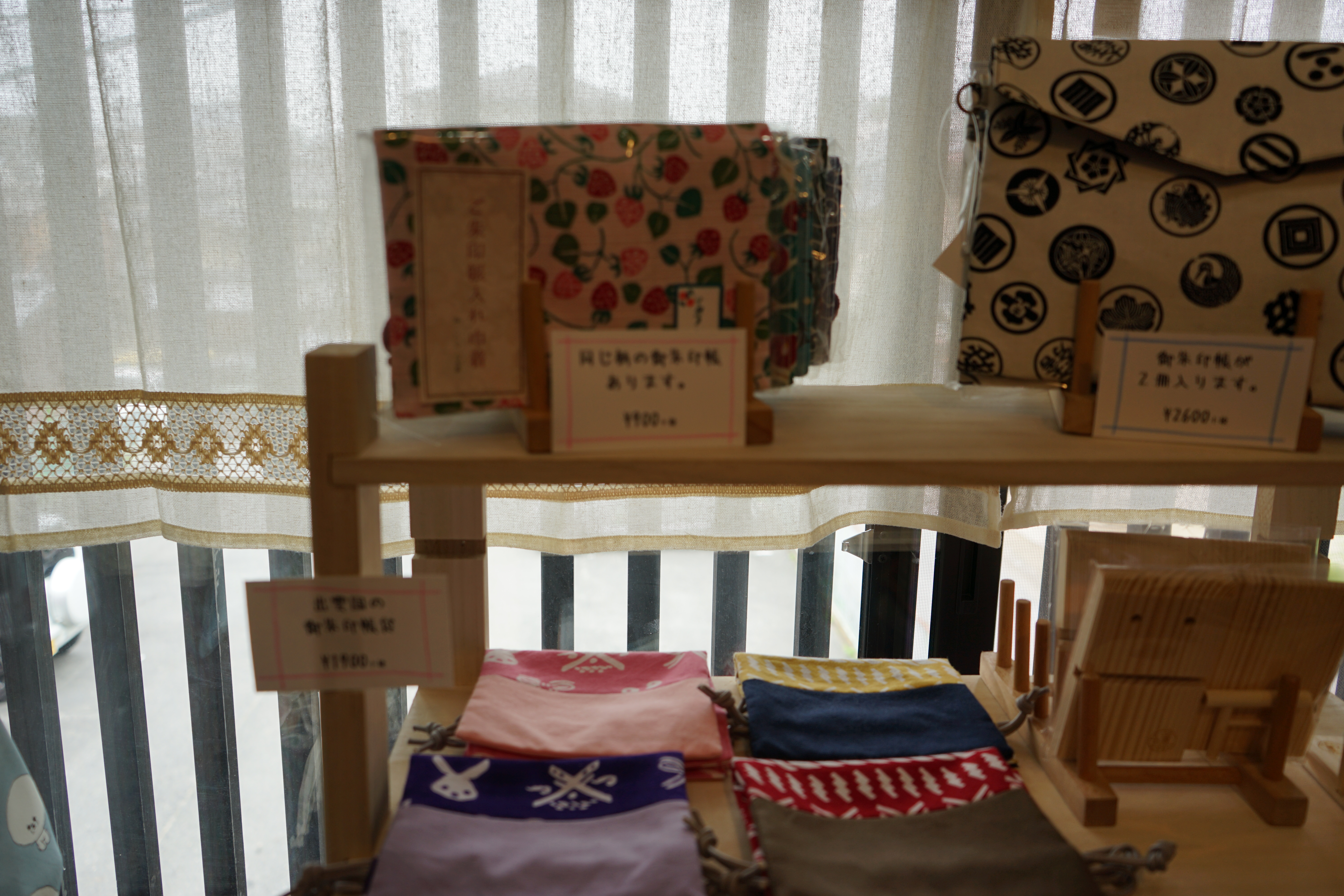 あっという間に時間が過ぎてしまい、あまりお店の話をお聞きすることはできませんでしたが、店主さんは手芸教室などにも出てらっしゃったり、お店におられる時間も空いてる時間は手芸をしたり、ネットでも御朱印帳の表紙をオーダーメードで作られてるそうです。