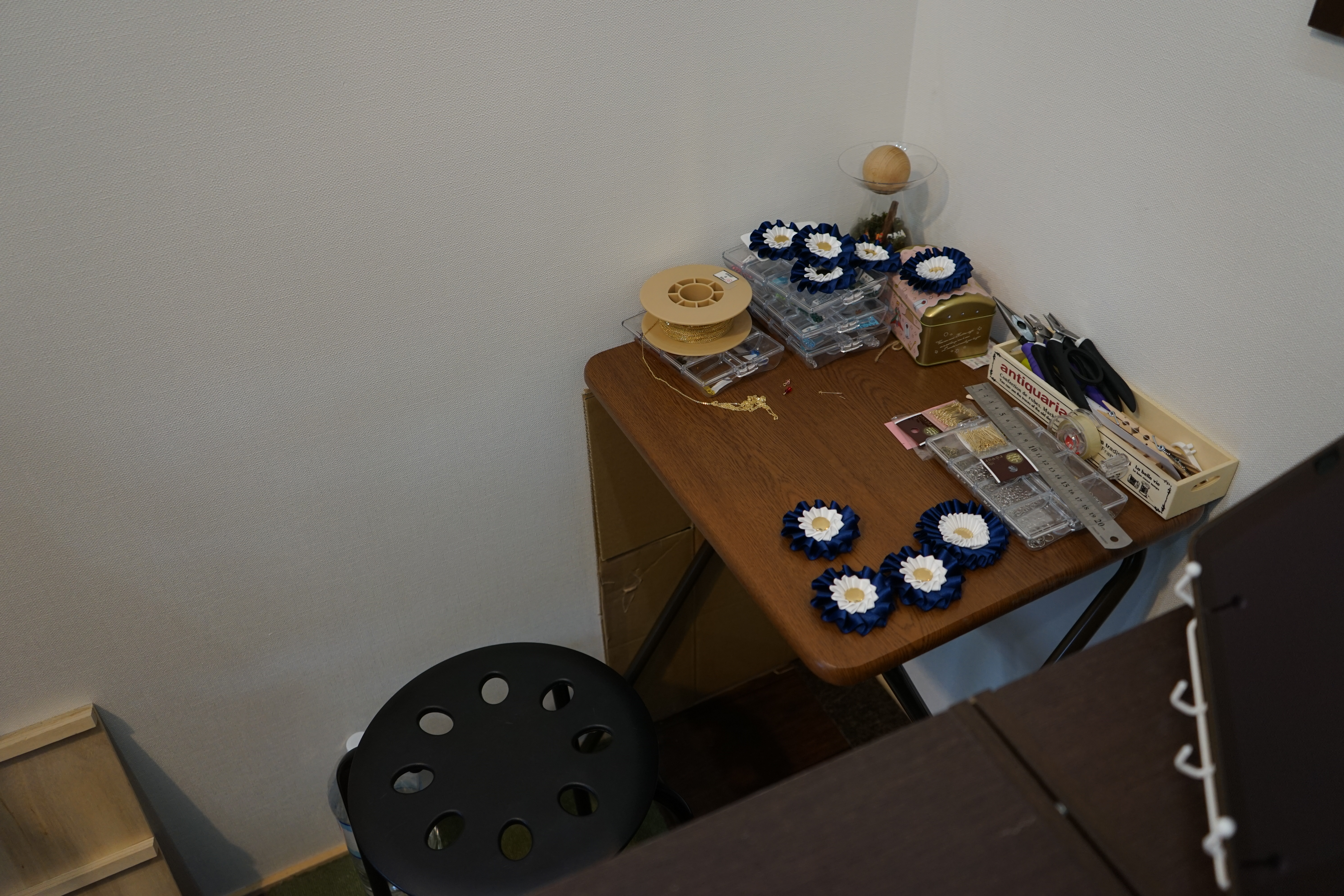 恐る恐る、こんにちはーと入ると店主さんがちょうど手芸をされてました。