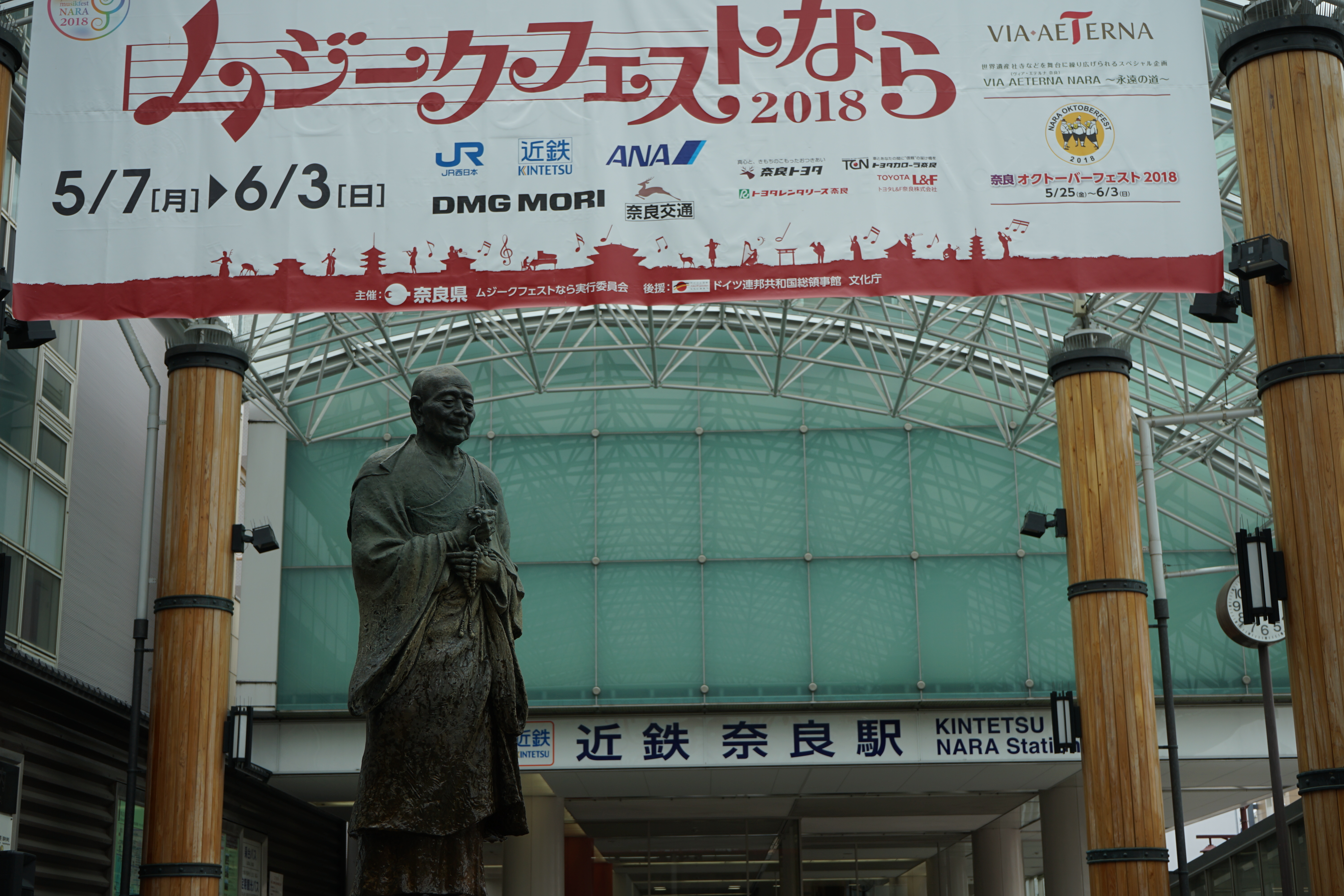 少し曇り空で湿度も高い今日(2018年5月26日)少し前にTwitterでメッセージをいただきました、ご朱印帳と旅のお供の雑貨「たびじたく」さんを目指すべき近鉄奈良駅に降り立ちました。(電車を降りただけw)この日近鉄奈良駅ではムジークフェストなら2018(5月7日〜6月3日)というイベントが行われていたみたいで、近鉄奈良駅前は大勢の人!ムジークフェストなら2018?気になるーーー!どんなんだろーーーー!という気持ちにはあまりならず(急いでたので)ひがしむき商店街を南進。