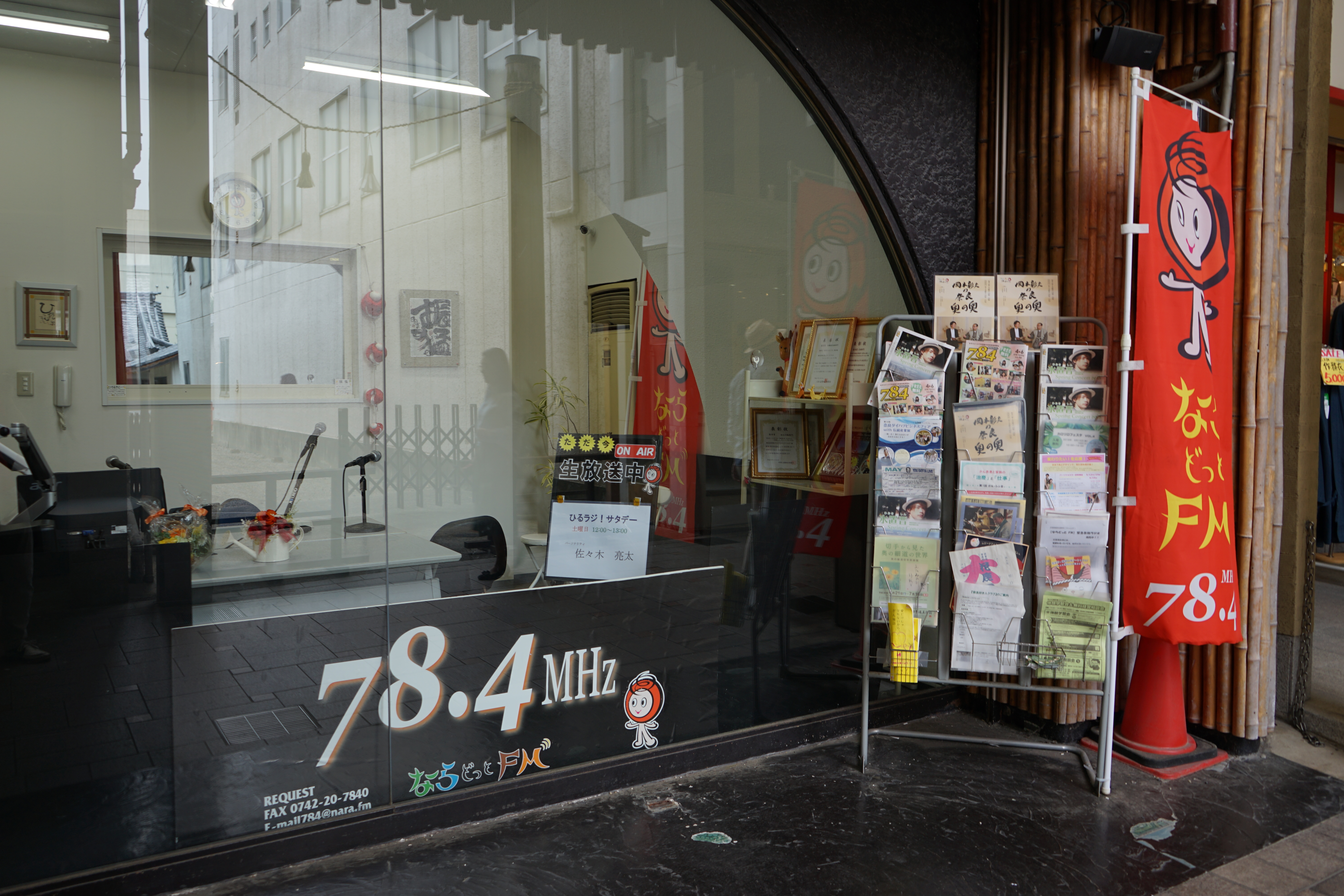 その後も優月さんや若草カレー本舗さん、魚万さん、わたがしのお店までもが私の心の悪魔に働きかけてきましたが、なんとか我慢しながら、歩いていると奈良のFMといえば、ならFM78.4Mhzの放送している前にきました。こ、これはならかんを紹介するチャンス!!よーーしDJの人にアピールしてやる!!と見てみたら、DJいない…これは陰謀ですね。先を急ぎます。